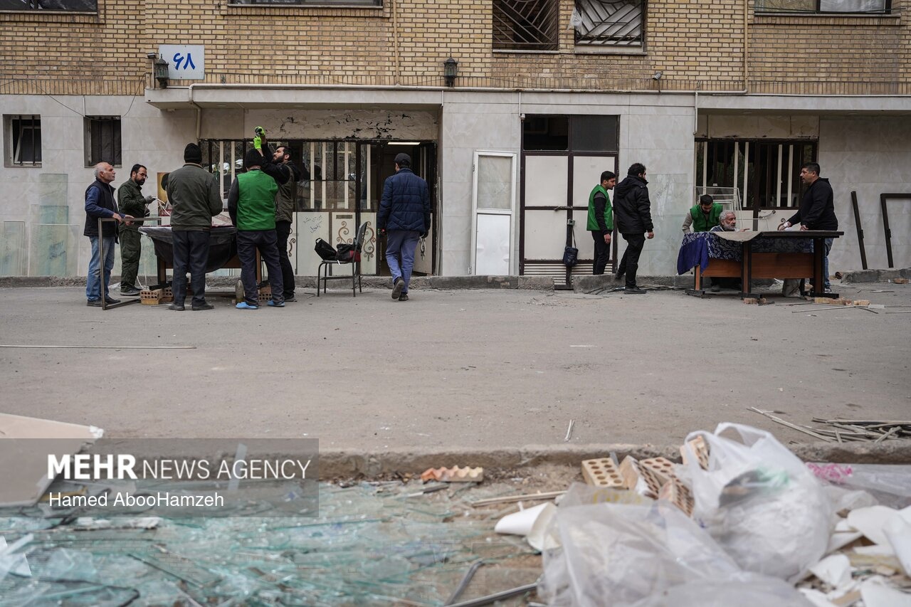 در پی تجاوز جنایتکاران آمریکایی-صهیونی به شهرک مسکونی شهید بروجردی در شرق تهران، گروههای جهادی از لحظات ابتدایی وقوع این جنایت، در کنار امدادگران مشغول خدمت رسانی، آواربرداری و بازسازی منازل آسیب دیده مردم هستند. |منبع:مهر