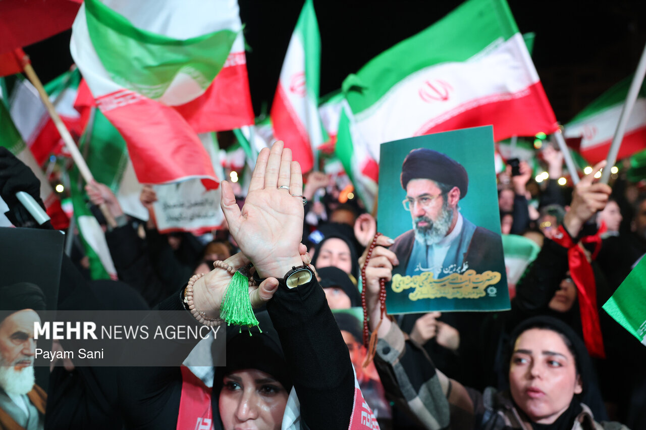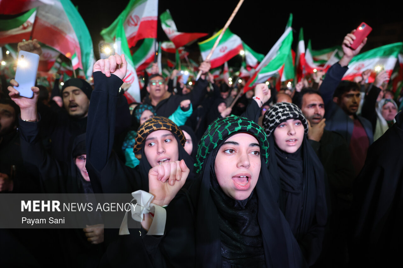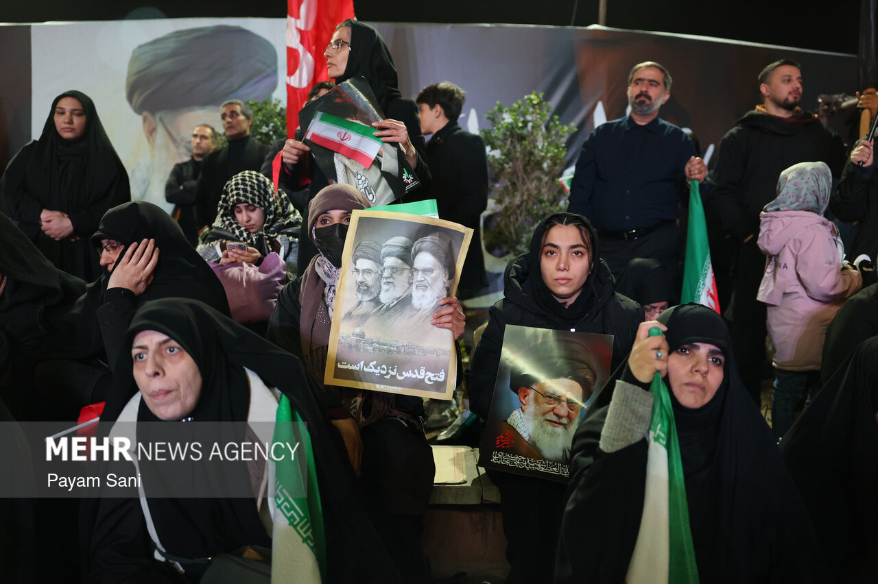 اقشار مختلف مردم در هجدهمین روز جنگ و به مناسبت چهارشنبه سوری، برای خنثی کردن توطئه احتمالی دشمن صهیونی، همدل و هم‌صدا در میدان انقلاب اسلامی تهران حاضر شدند.|منبع: مهر