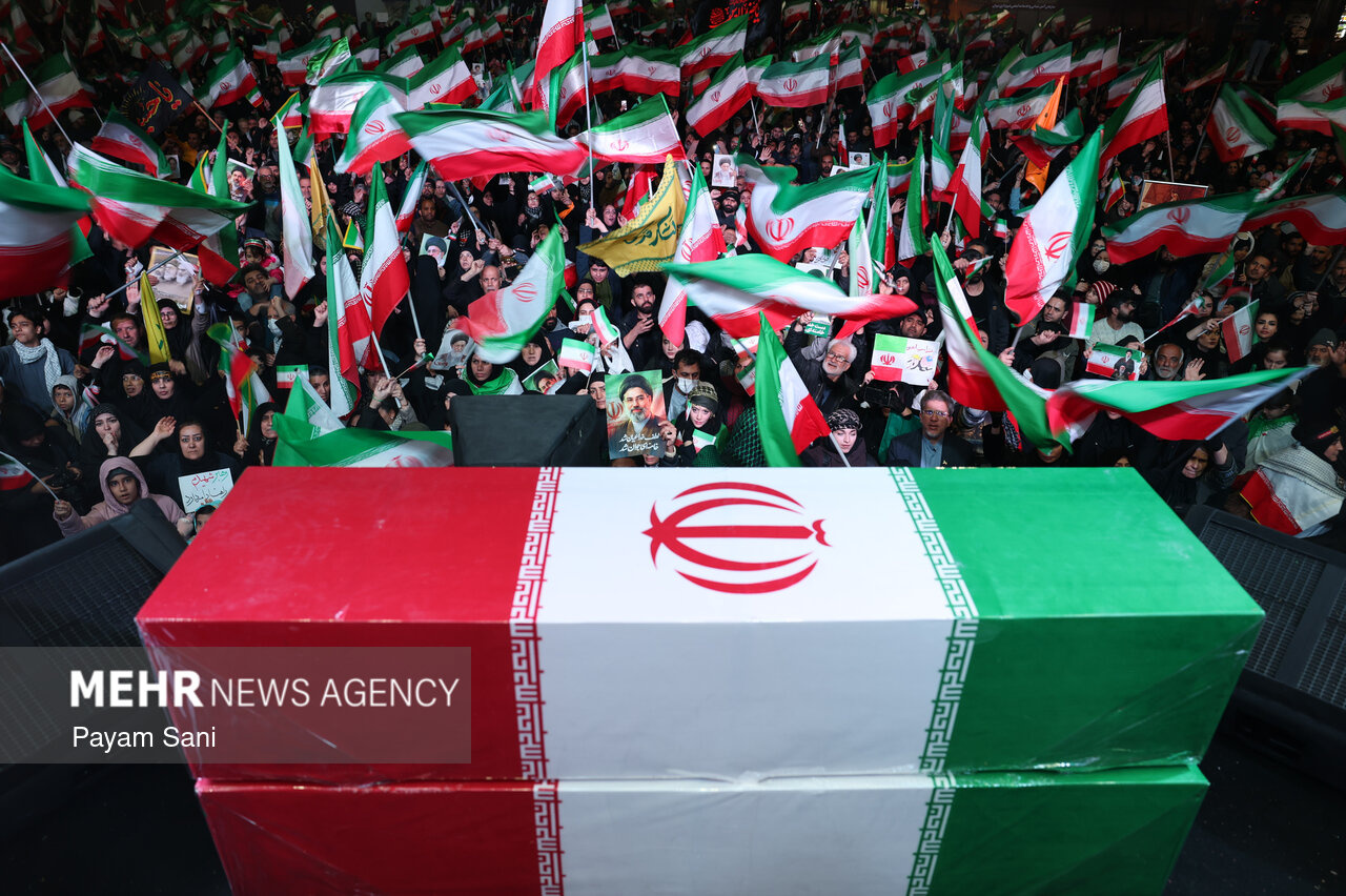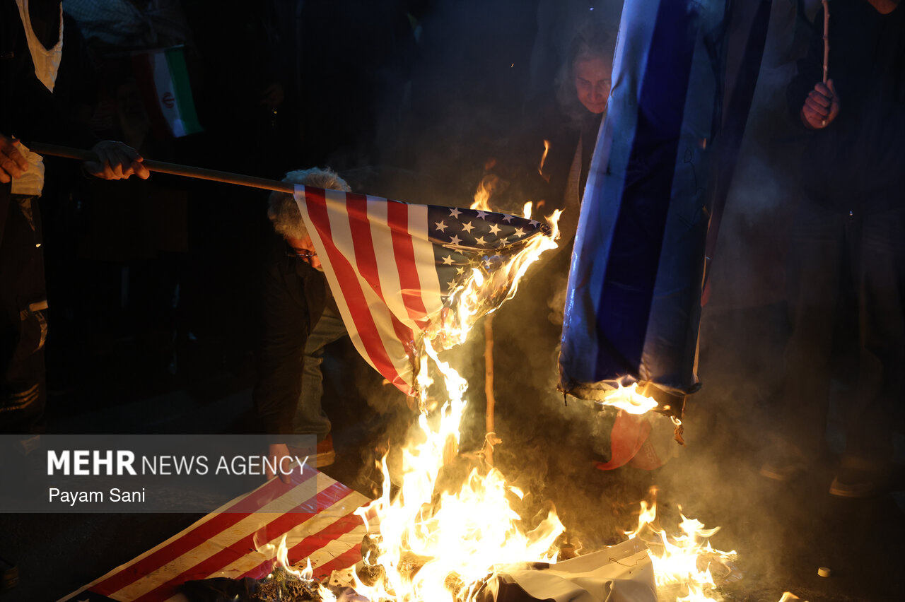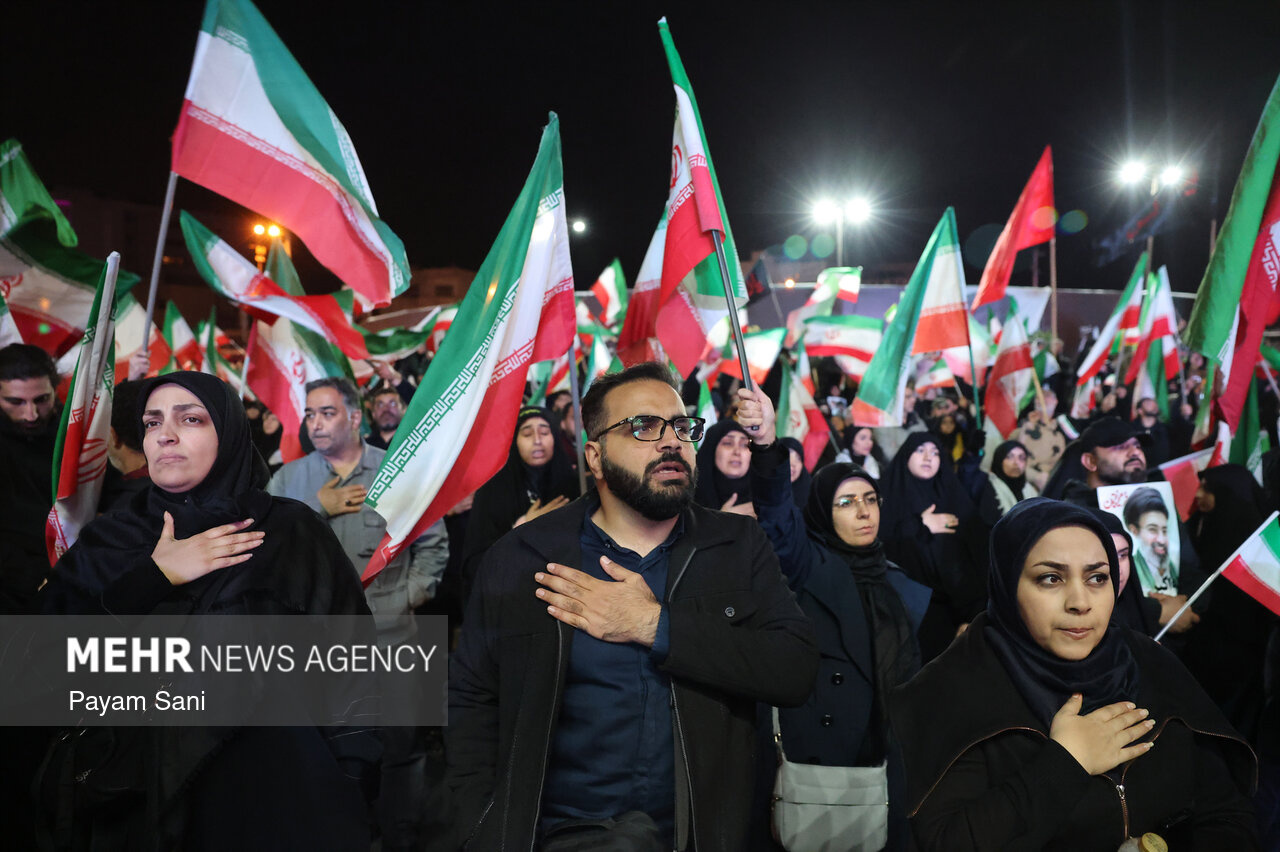 اقشار مختلف مردم در هجدهمین روز جنگ و به مناسبت چهارشنبه سوری، برای خنثی کردن توطئه احتمالی دشمن صهیونی، همدل و هم‌صدا در میدان انقلاب اسلامی تهران حاضر شدند.|منبع: مهر