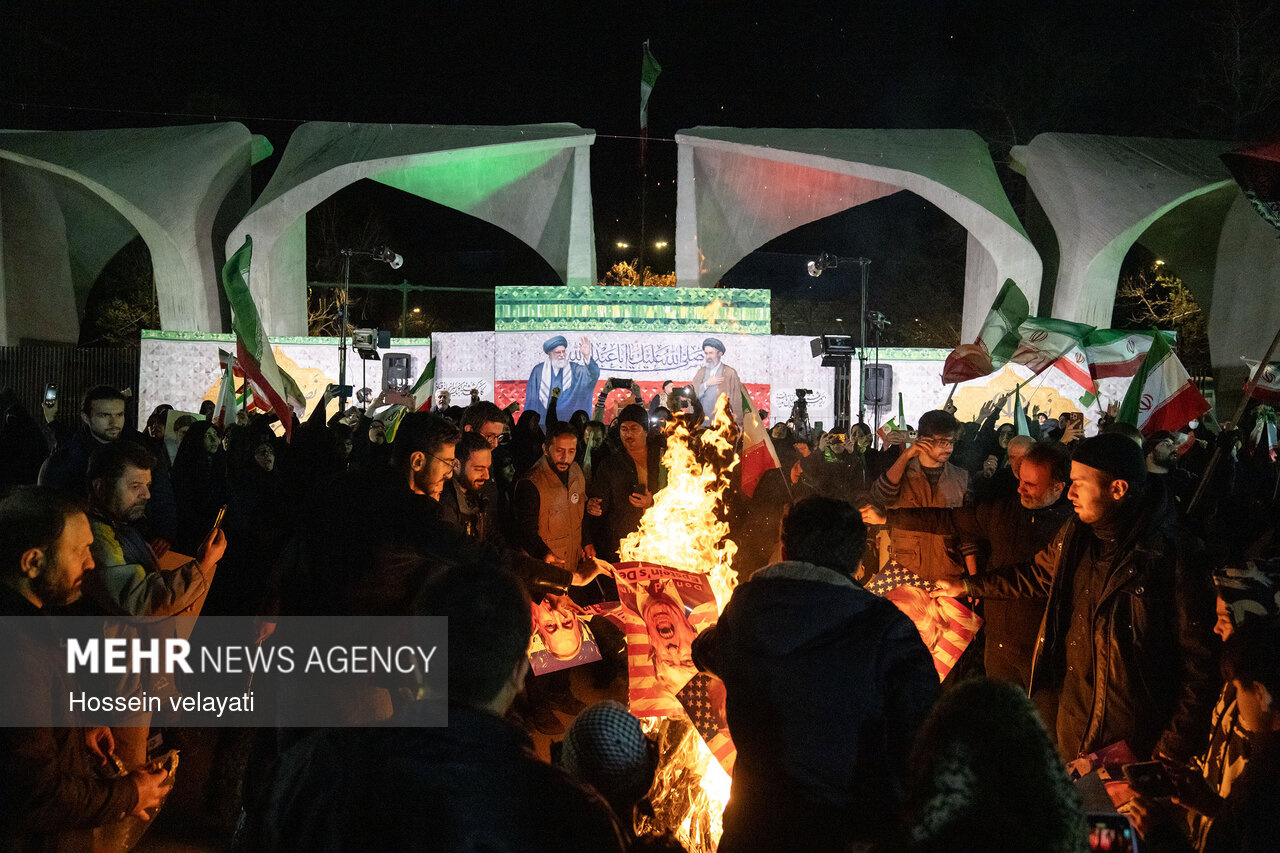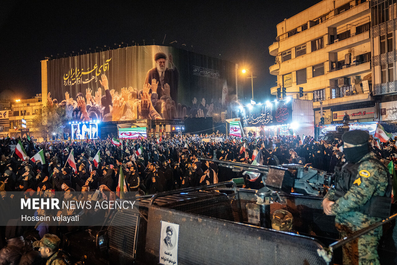 روز هفدهم جنگ، همزمان با چهارشنبه‌سوری و به منظور مقابله با فراخوان ناامنی از سوی آمریکا و اسرائیل، تجمعات متعددی در تهران و دیگر شهرها برگزار شد و همزمان مردم پایتخت با پیکر ۸۴ شهید مظلوم ناو دنا که بدست ارتش جنایتکار امریکا به شهادت رسیدند، وداع کردند (پیکر ۲۰ شهید دیگر این ناو هرگز پیدا نشد)