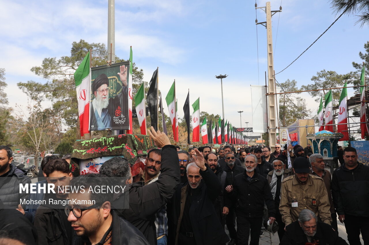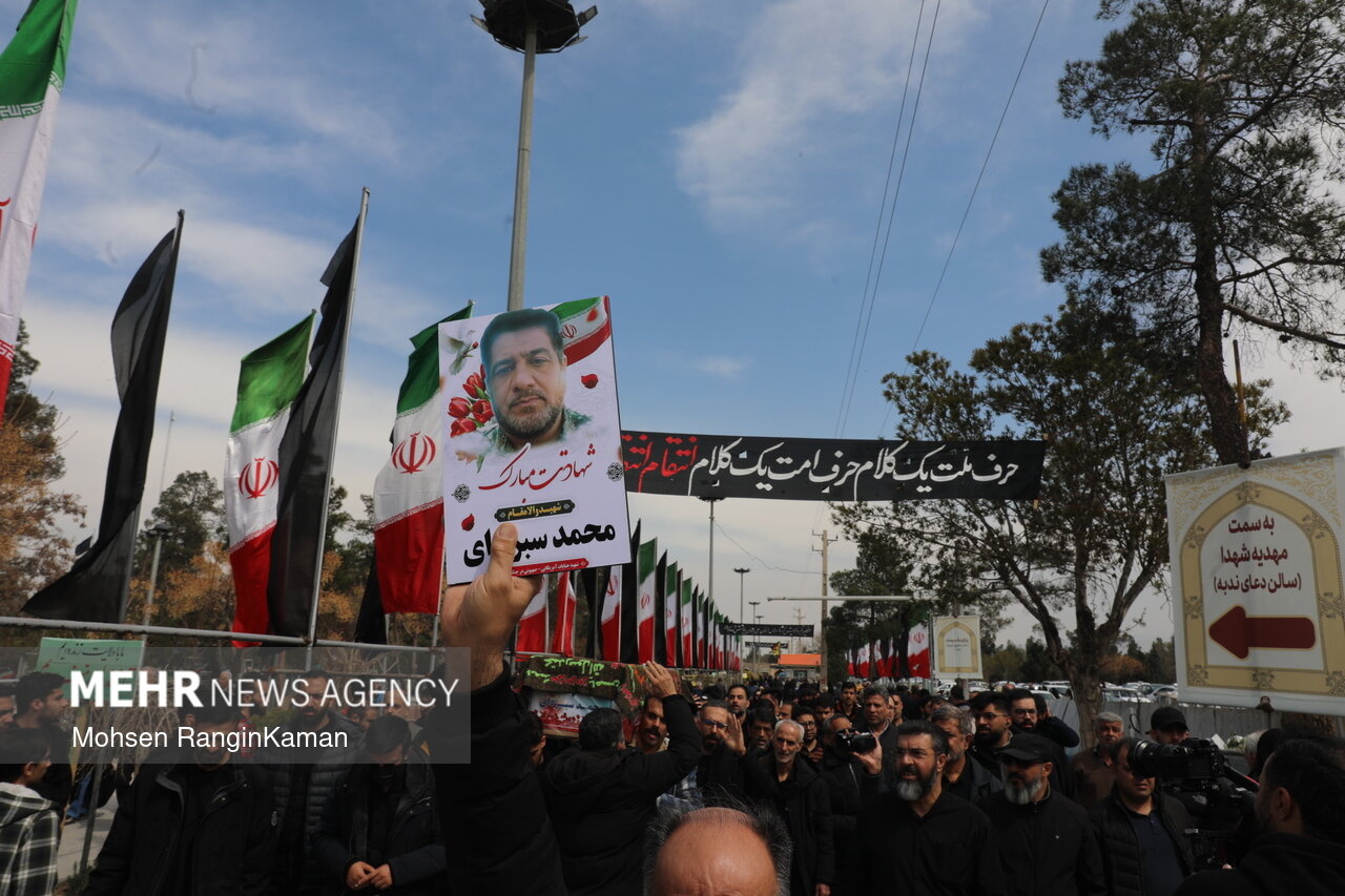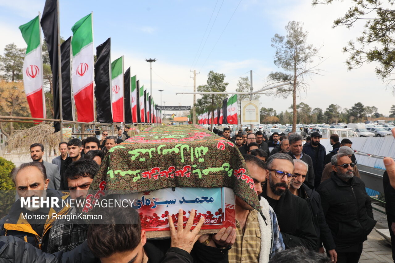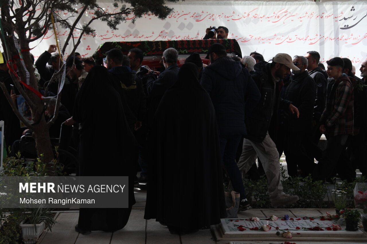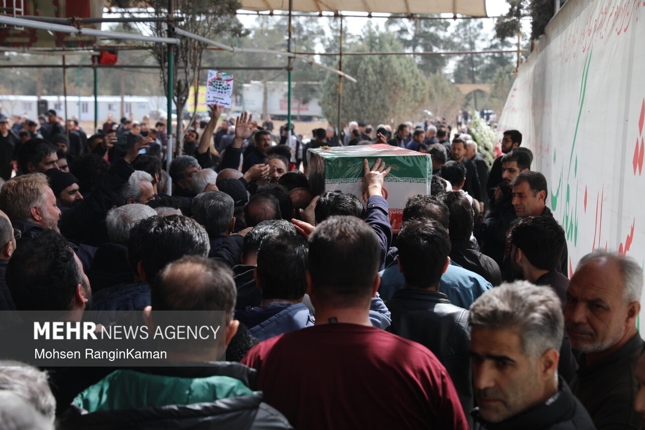 مراسم وداع با پیکر مطهر شهدای حملات صهیونی-آمریکایی در معراج شهدای بهشت زهرا برگزار و پیکر مطهر شهدا در قطعه ۴۲ بهشت حضرت زهرا (سلام الله علیها) دفن شد.|منبع: مهر
