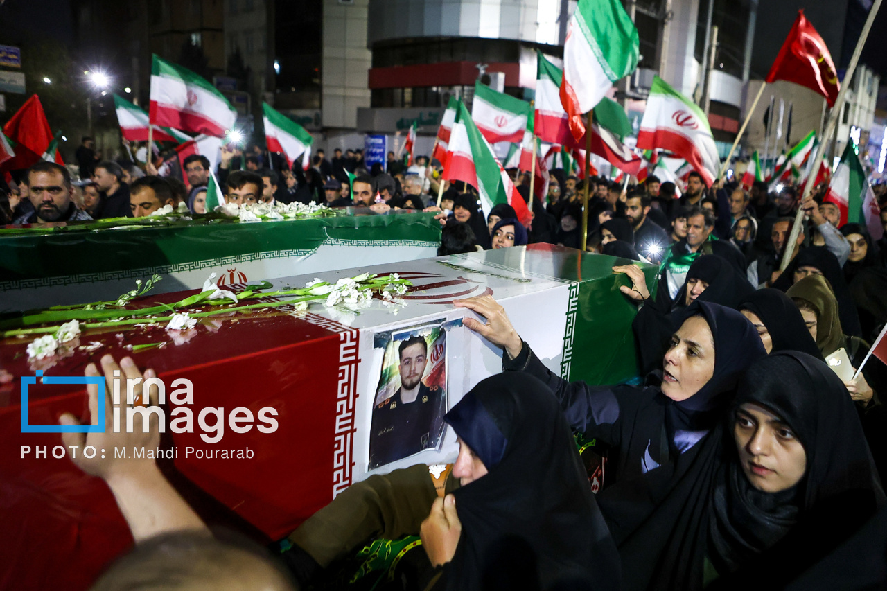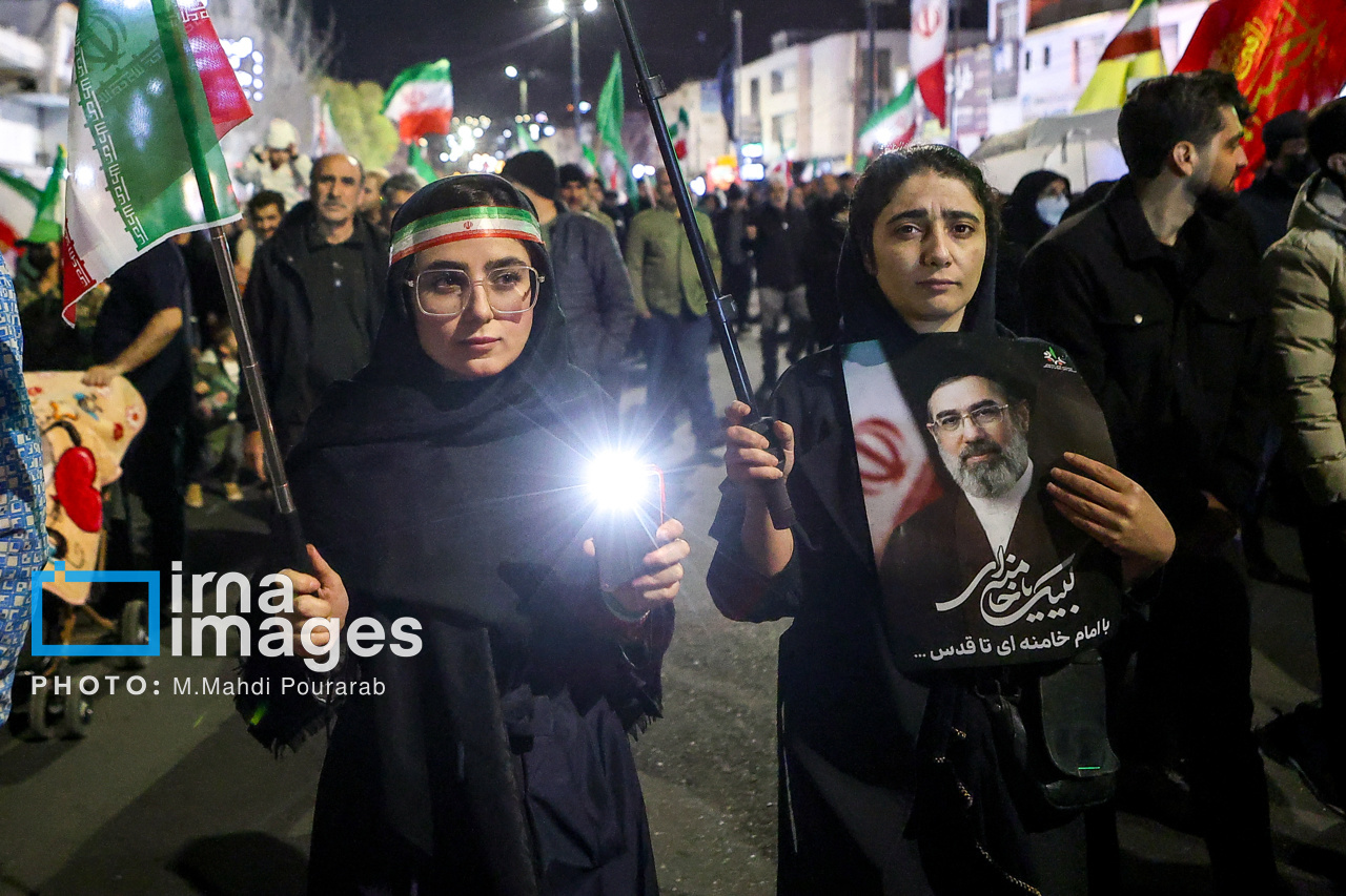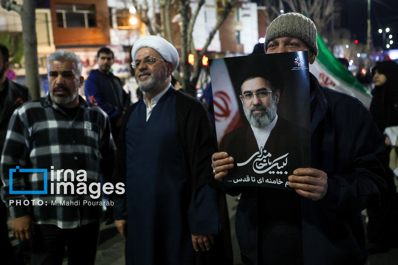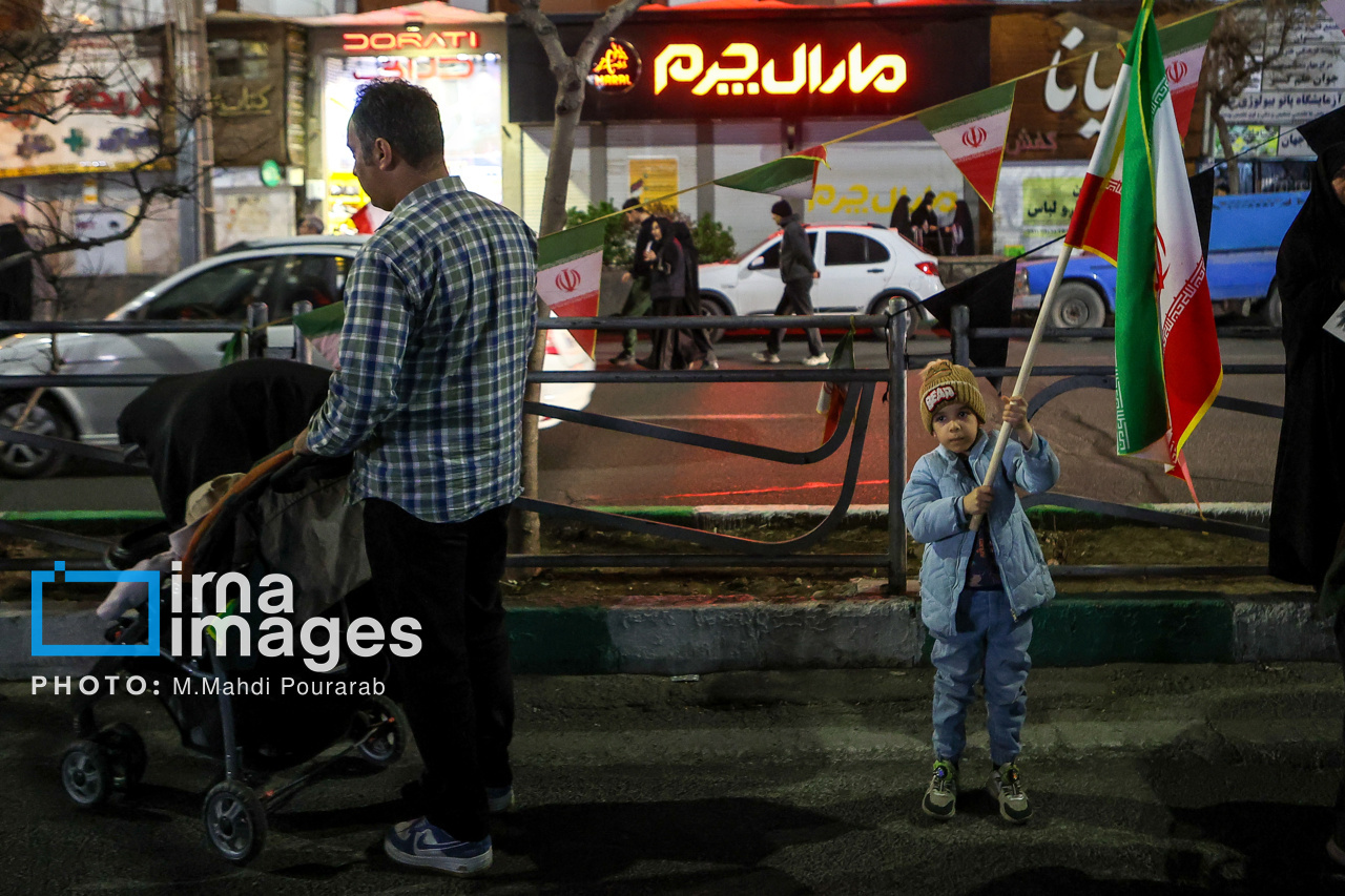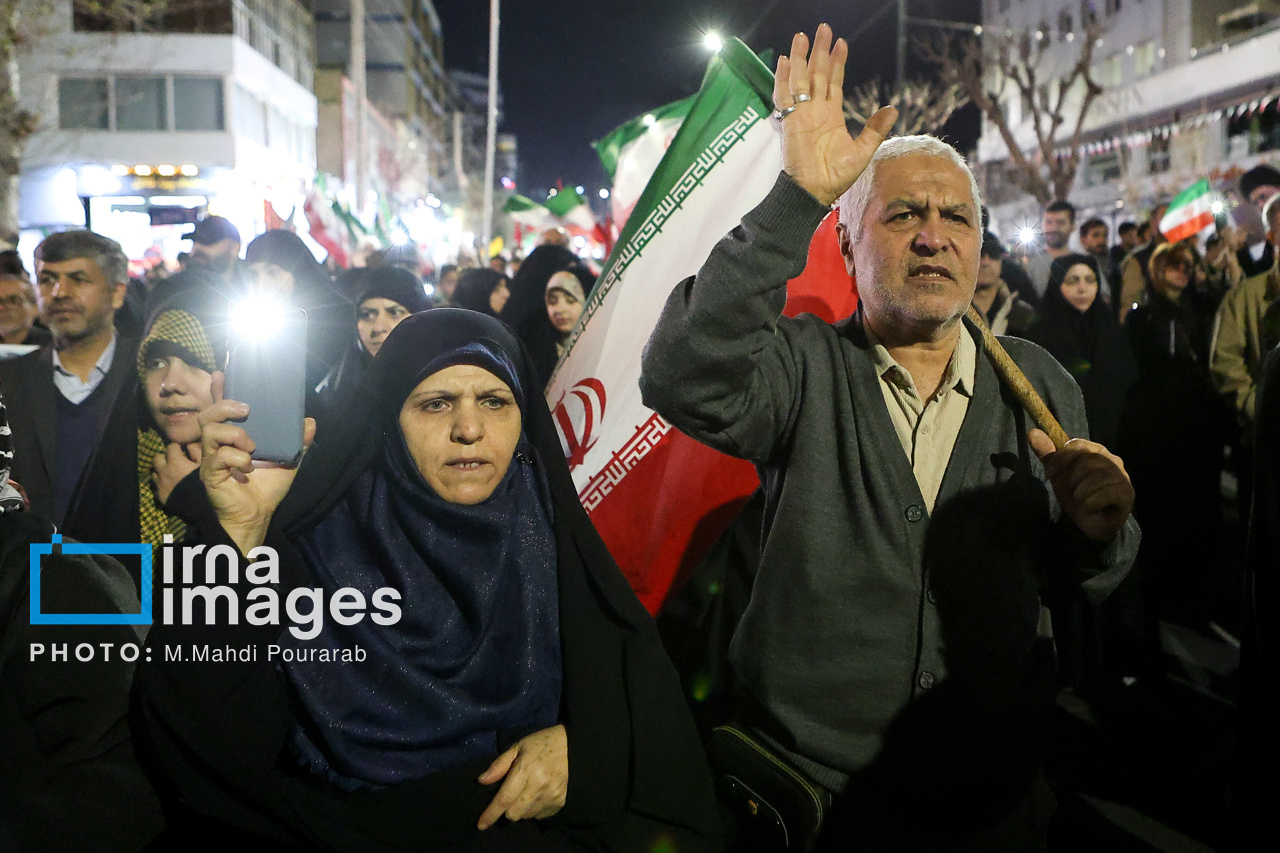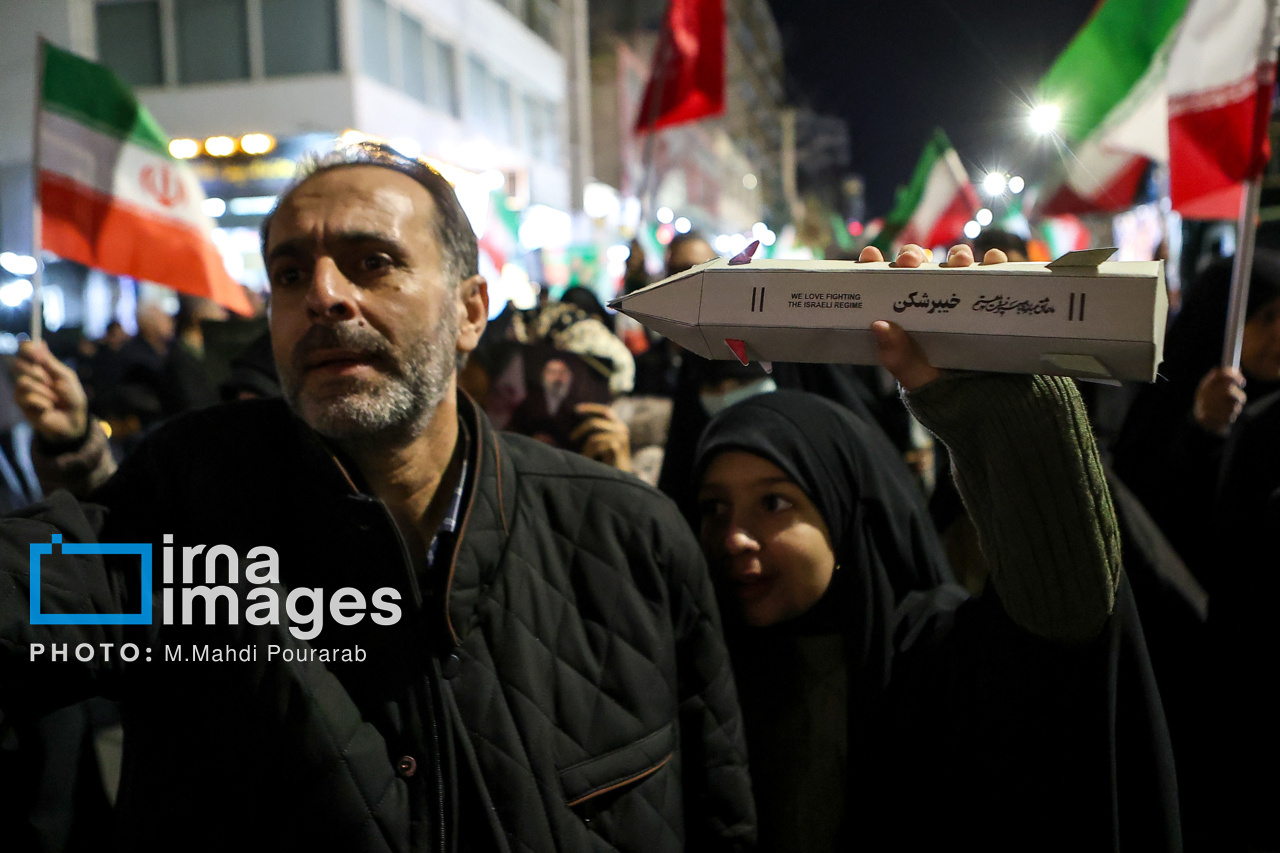 میدان آزادگان کرج شامگاه سه شنبه (۴ فروردین ۱۴۰۴) میزبان سیل خروشان مردمی بود که در بیست و چهارمین شب از راهپیماییهای شبانه و عطش انتقام از دشمن، به چهارراه هفت تیر سرازیر شدند و صحنهای از وحدت و انسجام ملی را به نمایش گذاشتند.|منبع: ایرنا
