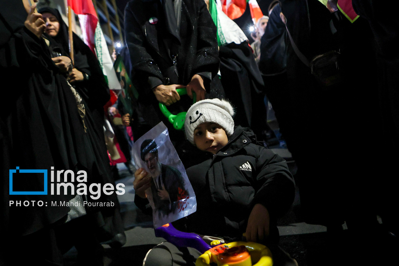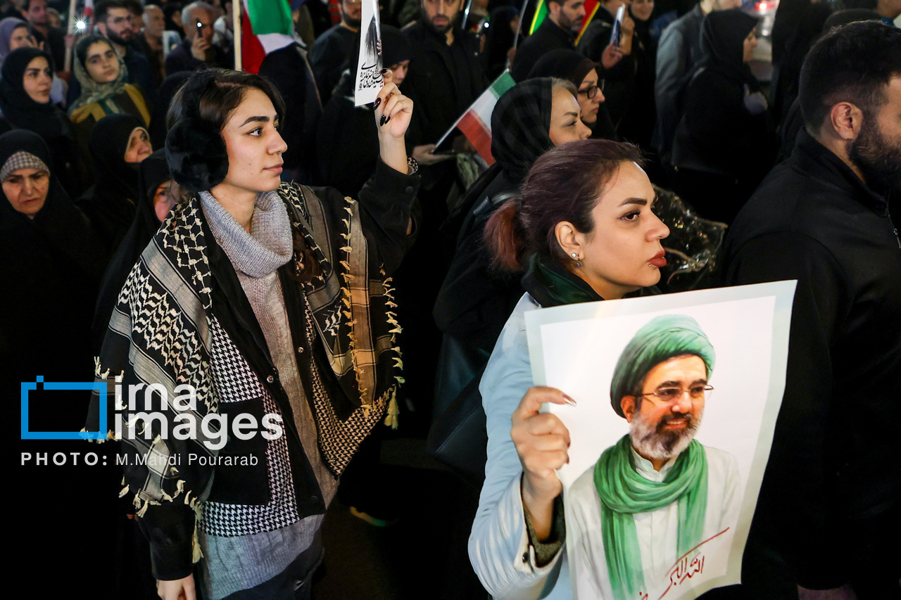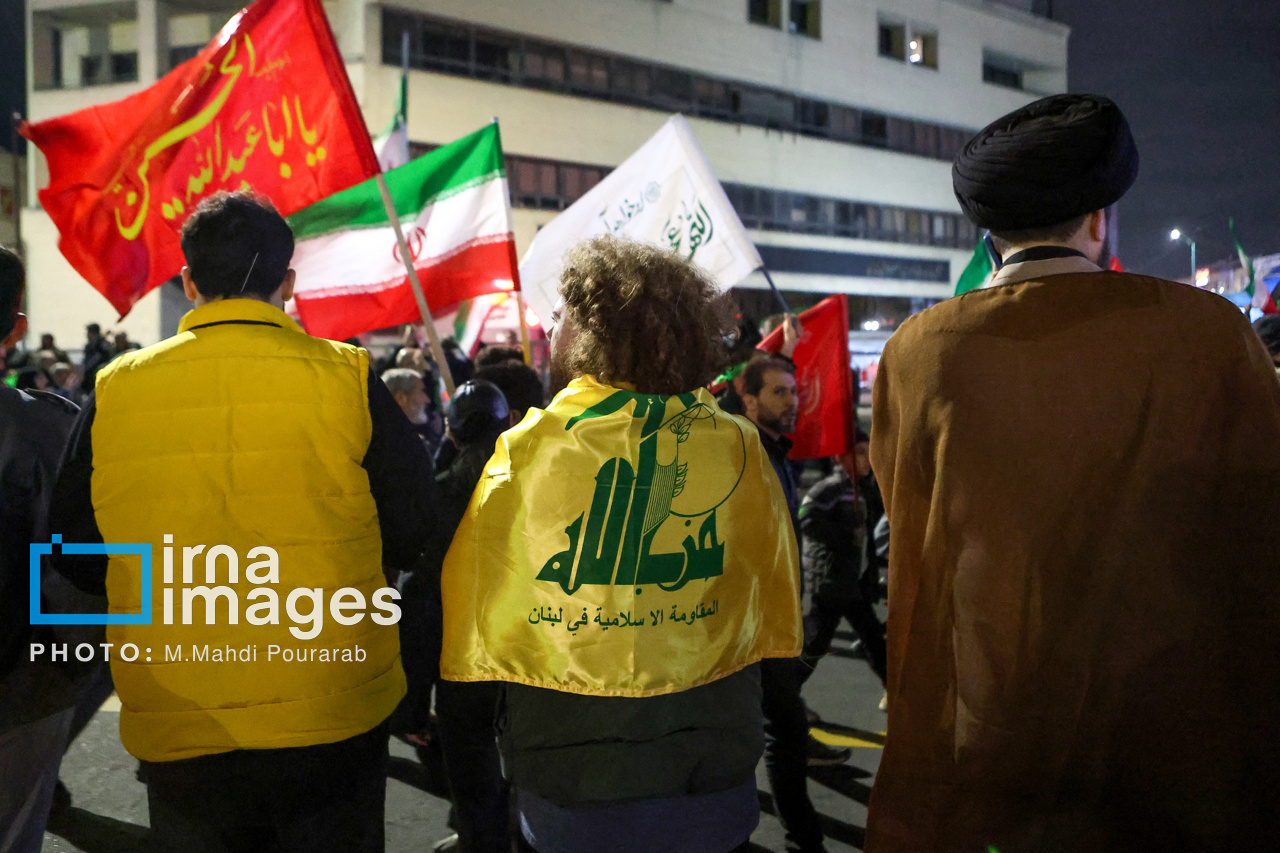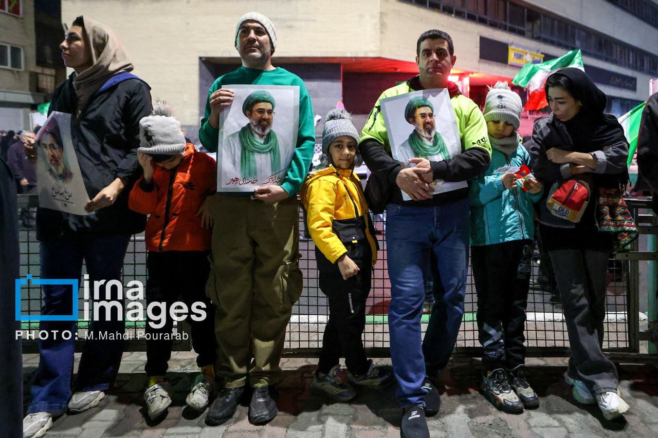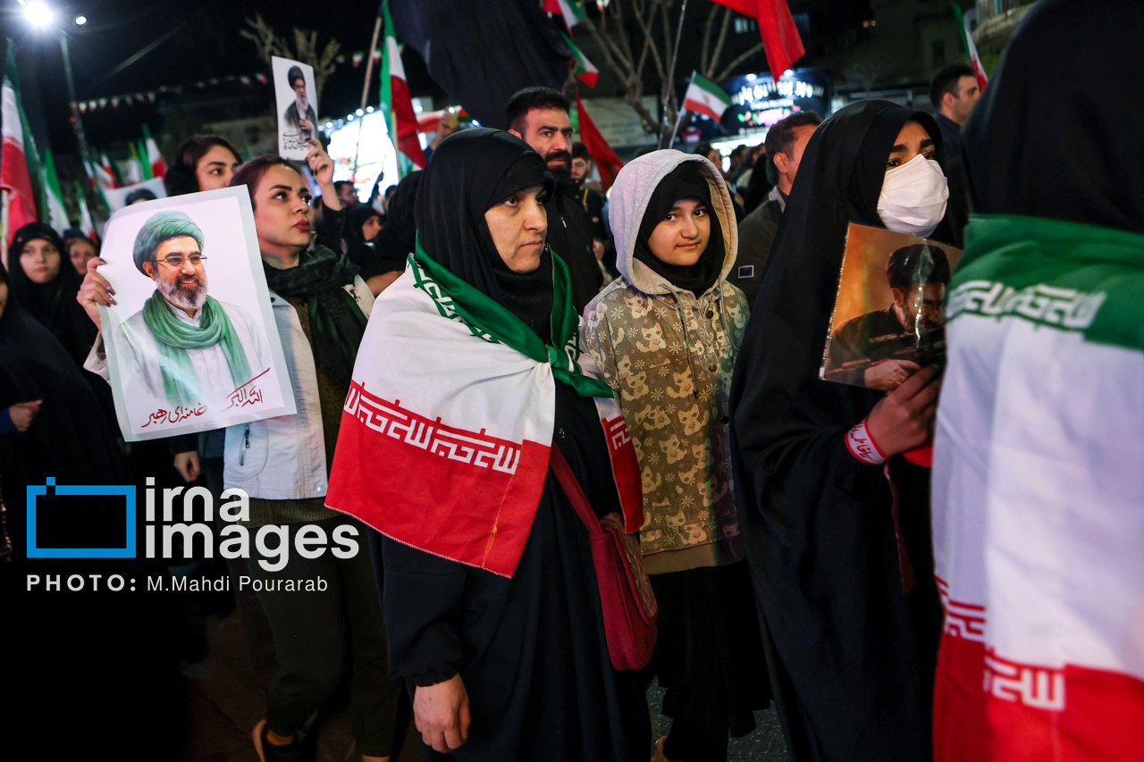 میدان آزادگان کرج شامگاه سه شنبه (۴ فروردین ۱۴۰۴) میزبان سیل خروشان مردمی بود که در بیست و چهارمین شب از راهپیماییهای شبانه و عطش انتقام از دشمن، به چهارراه هفت تیر سرازیر شدند و صحنهای از وحدت و انسجام ملی را به نمایش گذاشتند.|منبع: ایرنا
