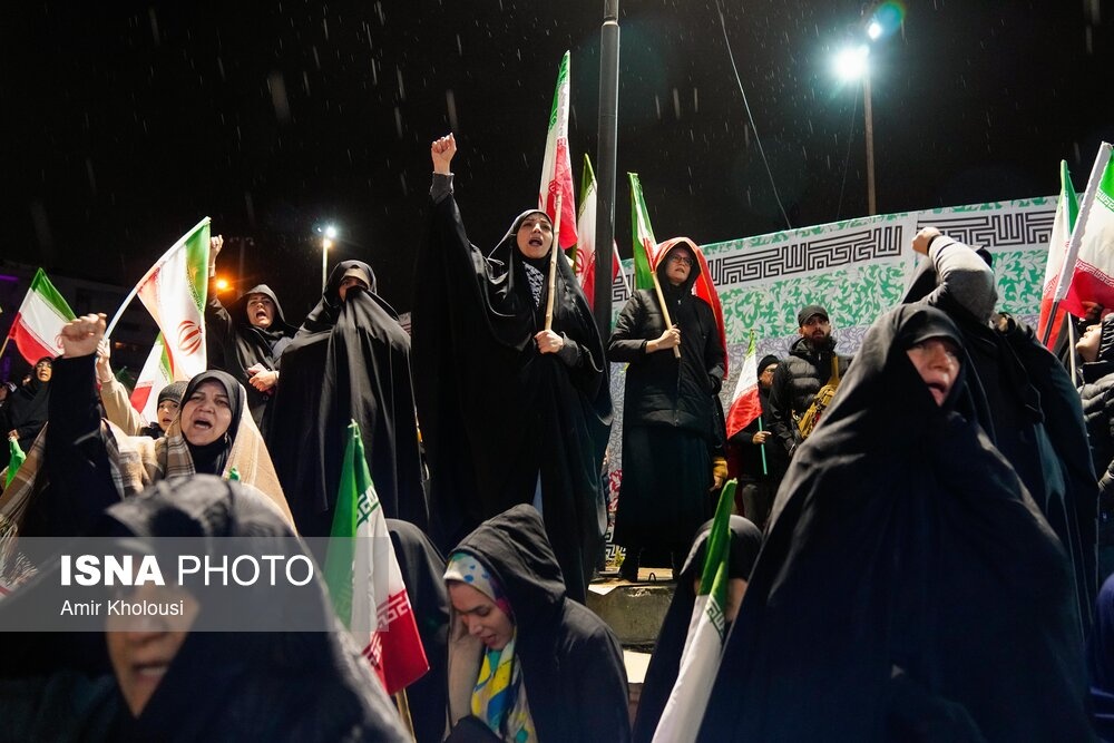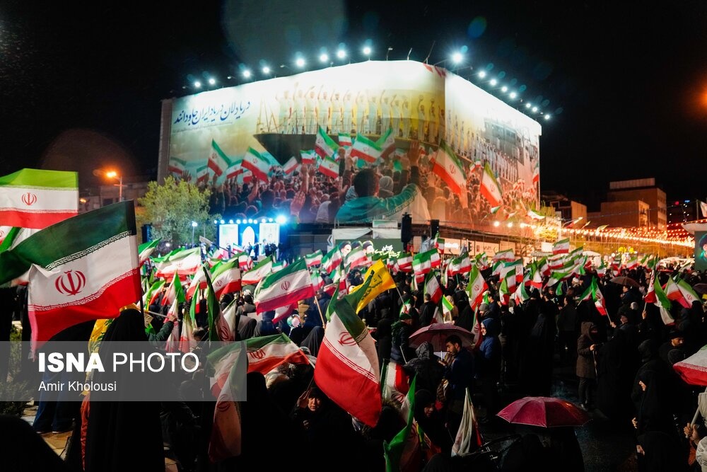 شامگاه چهارشنبه ۵ فروردین ۱۴۰۵، در پی حمله تجاوزکارانه رژیم صهیونیستی و آمریکا به خاک کشورمان، مردم تهران همزمان با دیگر نقاط کشورمان با حضور در خیابانها و میادین اصلی شهر ضمن گرامیداشت یاد رهبر شهید و بیعت با حضرت آیت آلله سید مجتبی خامنهای حمایت خود را از مدافعان وطن اعلام کردند.|منبع: ایسنا