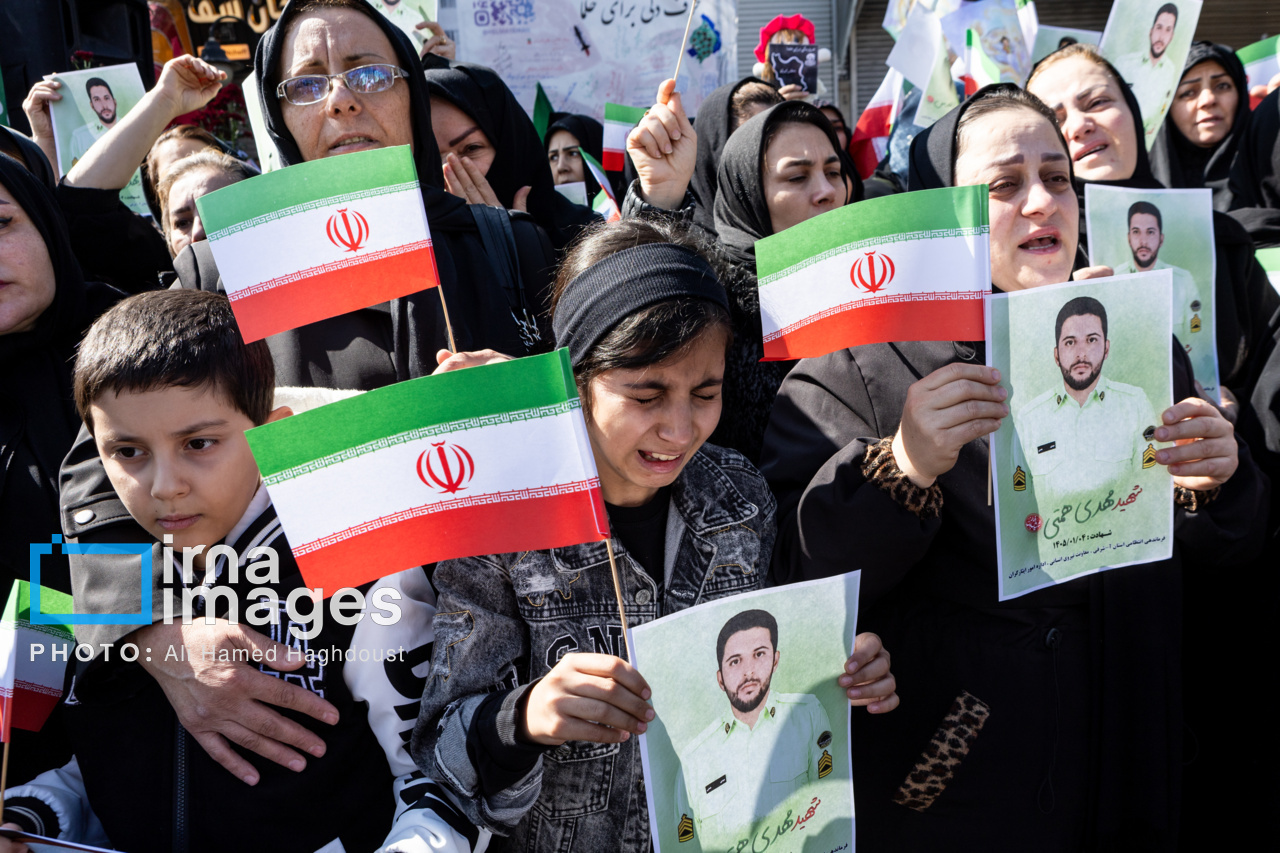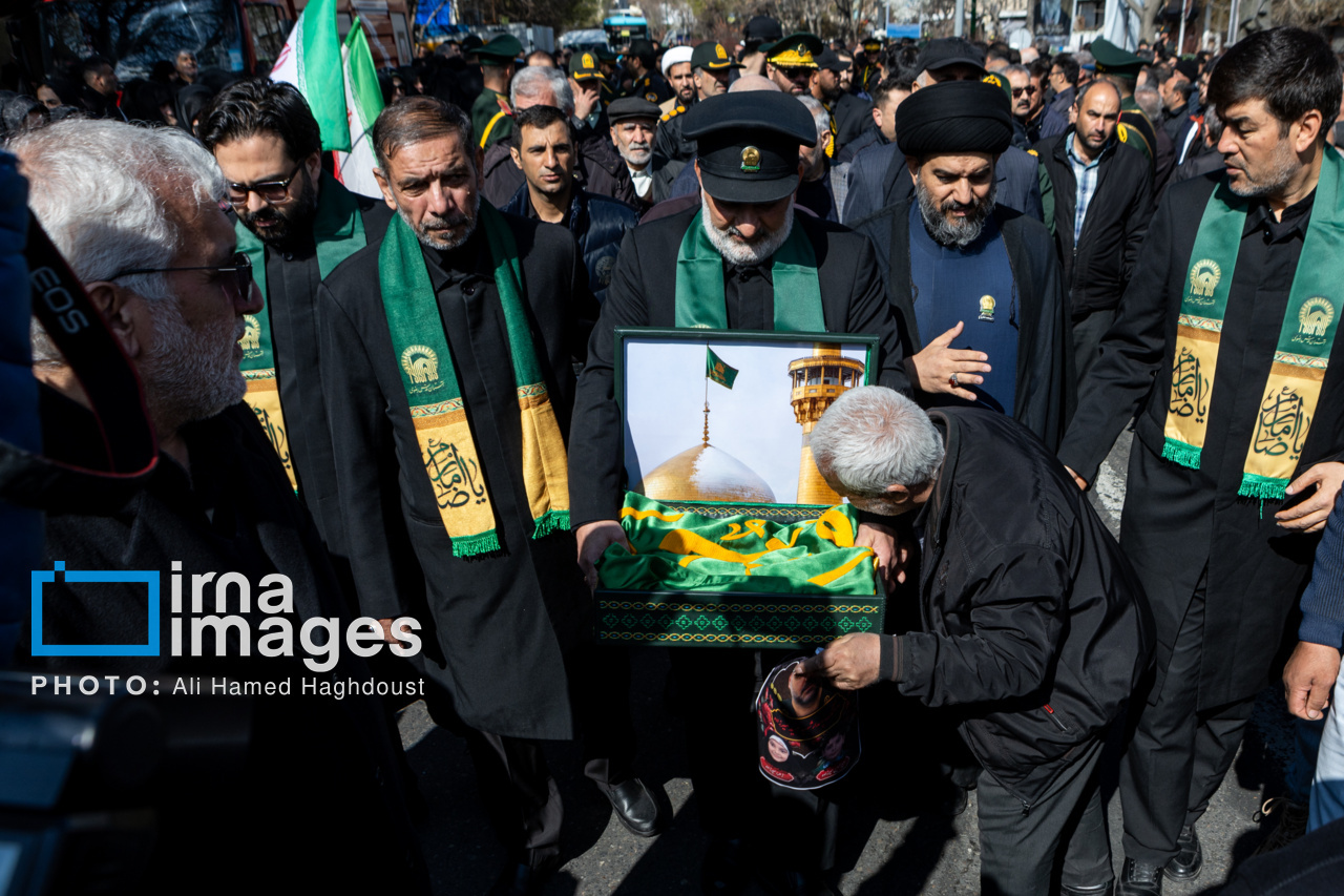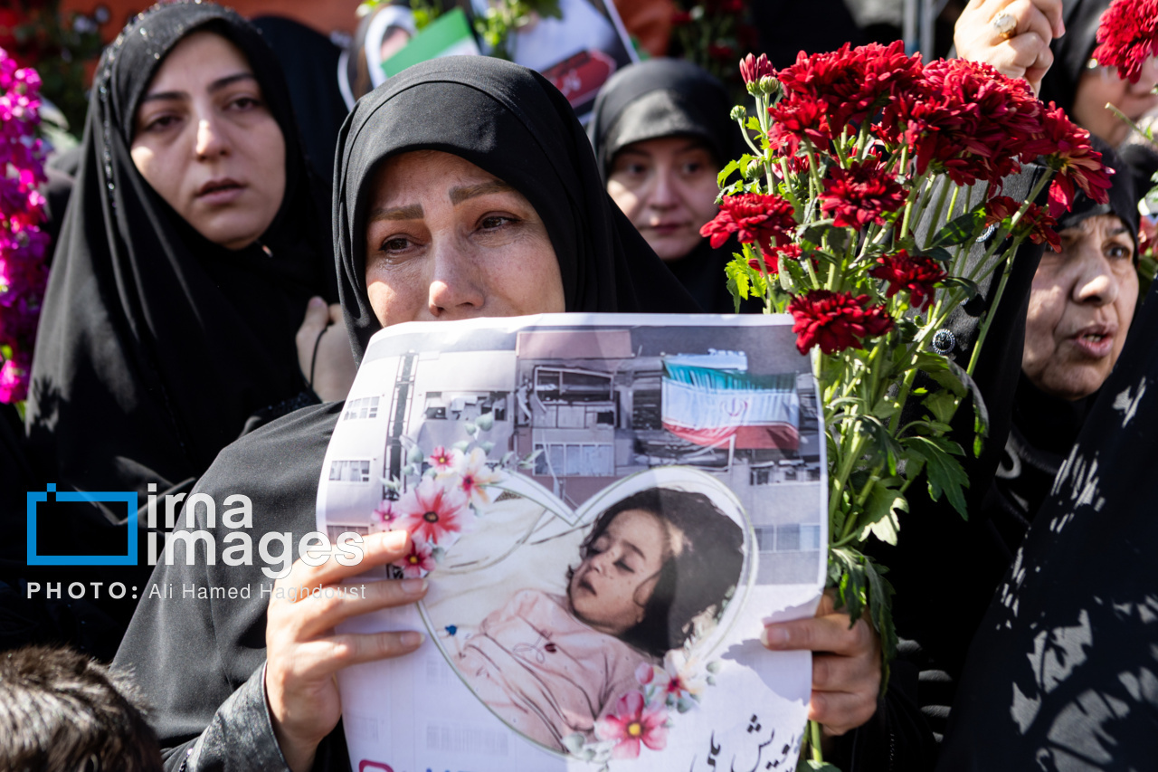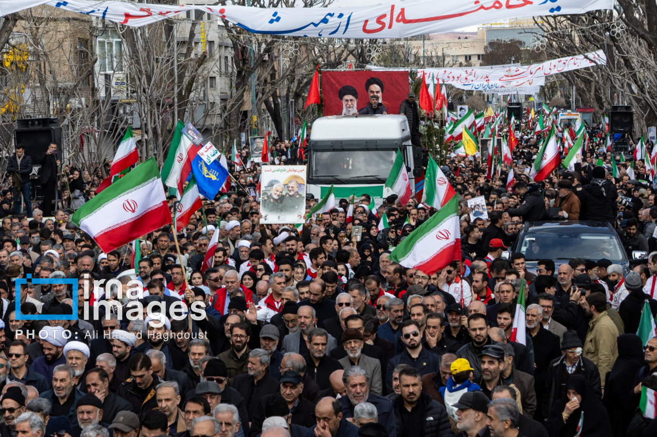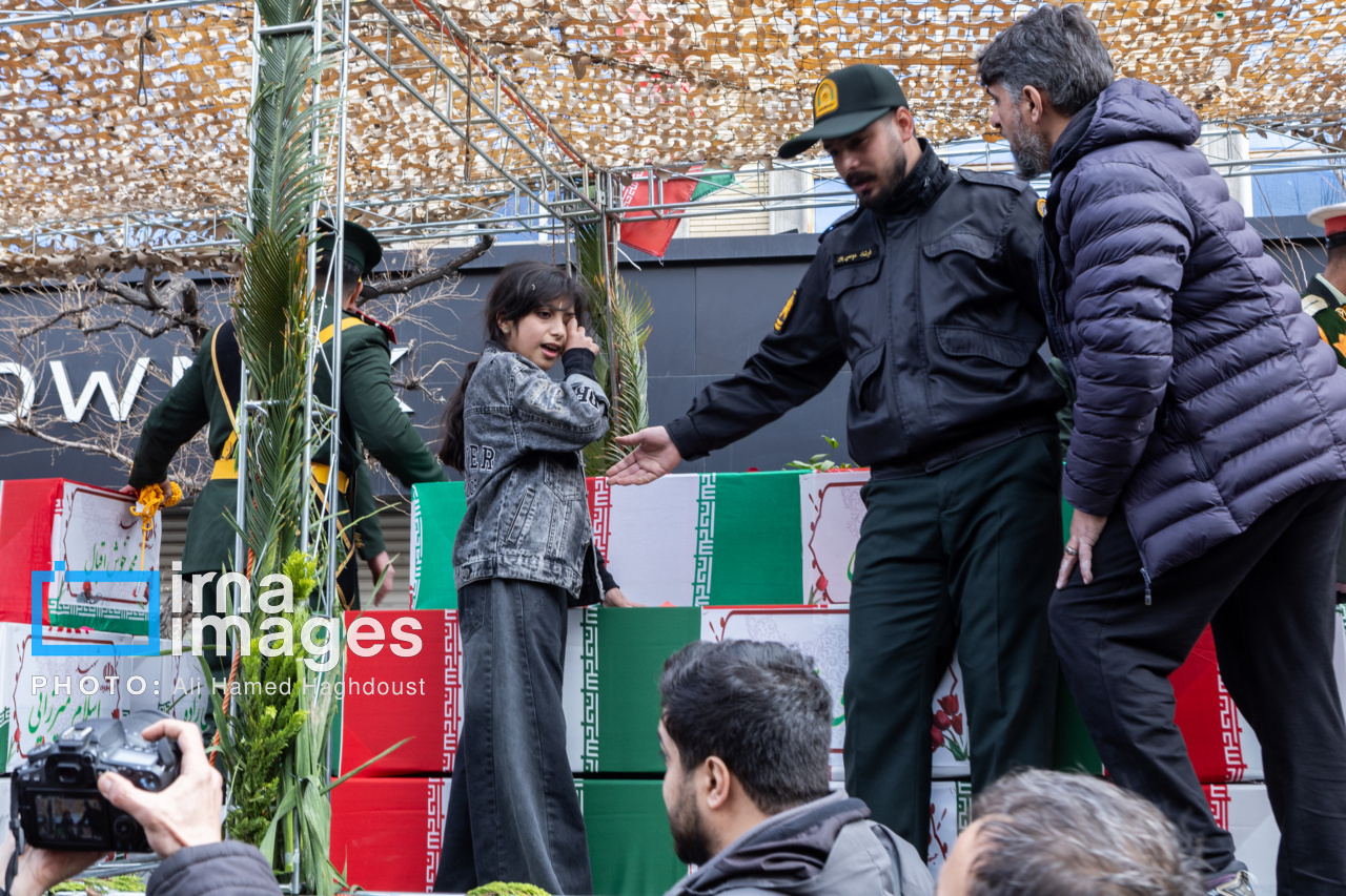 پیکر مطهر ۲۱ شهید حملات صهیونیستی _آمریکایی روز پنجشنبه (۶ فروردین ۱۴۰۵) با حضور پرشور مردم از میدان شهدا تا خیابان ارتش جنوبی تبریز تشییع شدند.|منبع: ایرنا