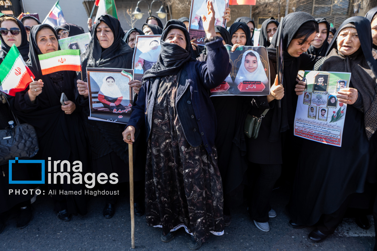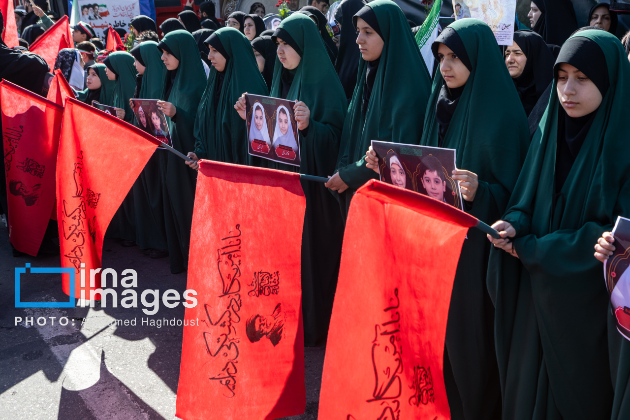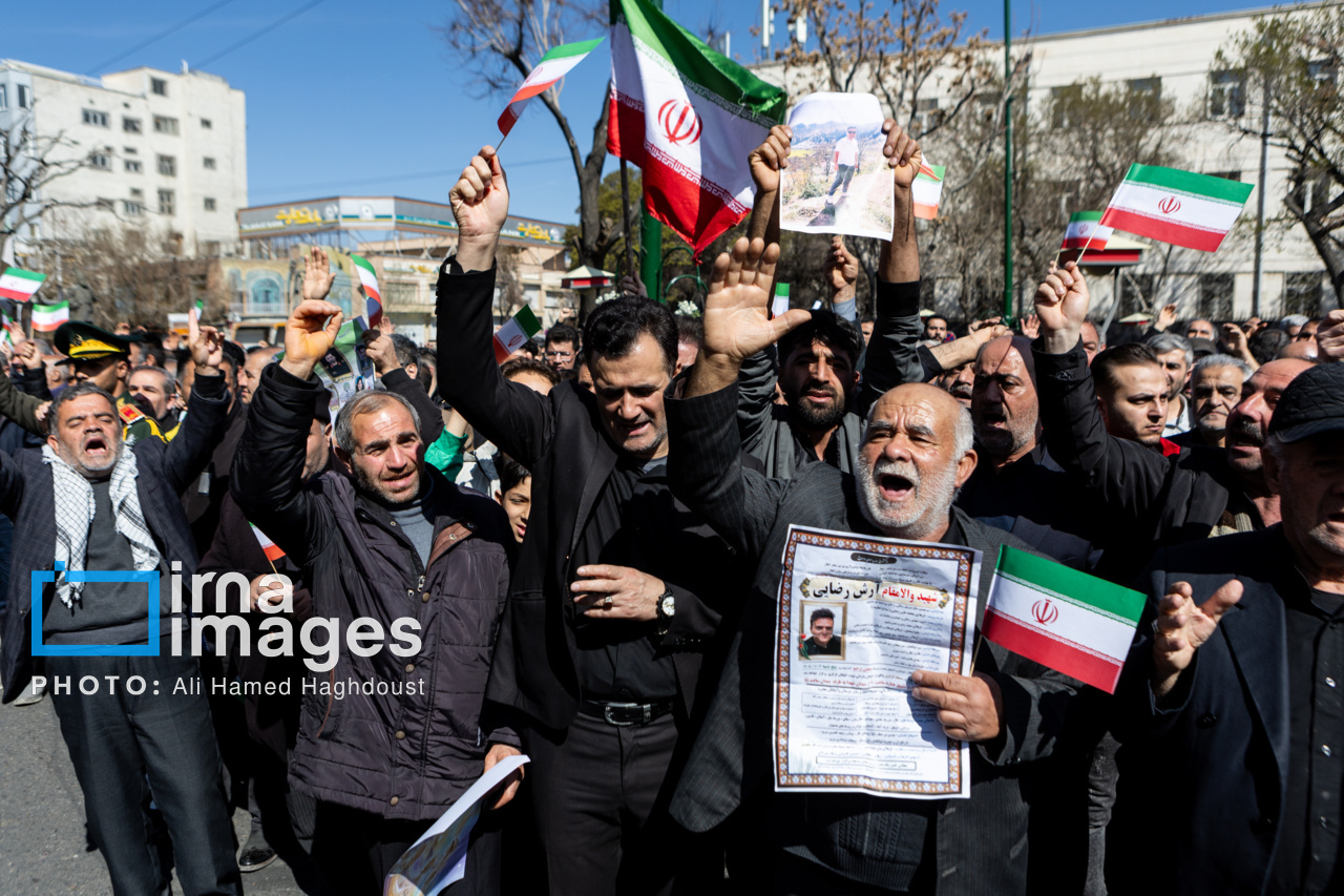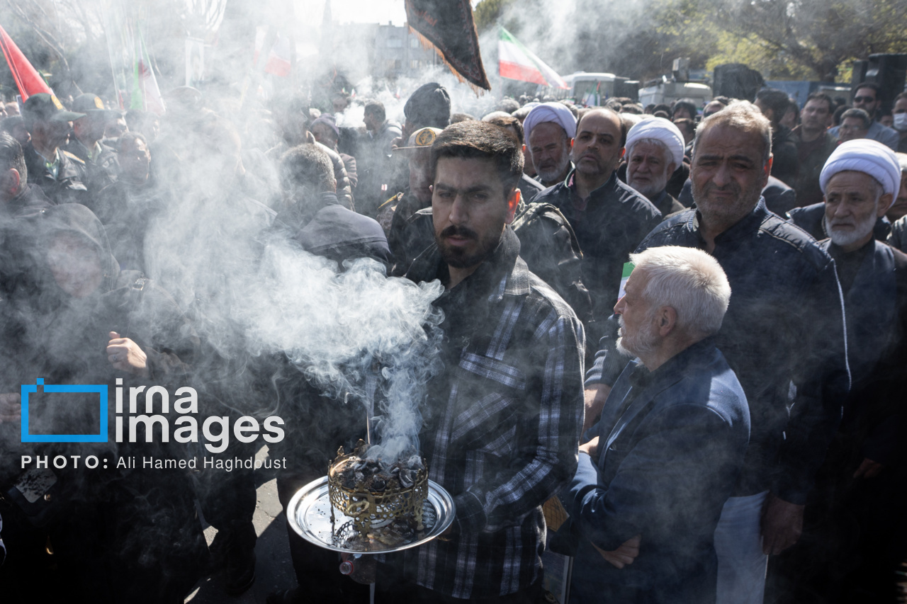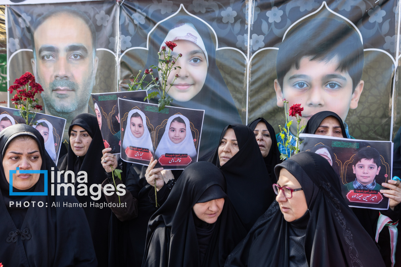 پیکر مطهر ۲۱ شهید حملات صهیونیستی _آمریکایی روز پنجشنبه (۶ فروردین ۱۴۰۵) با حضور پرشور مردم از میدان شهدا تا خیابان ارتش جنوبی تبریز تشییع شدند.|منبع: ایرنا