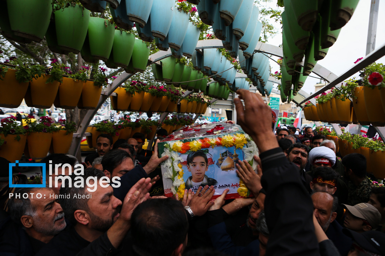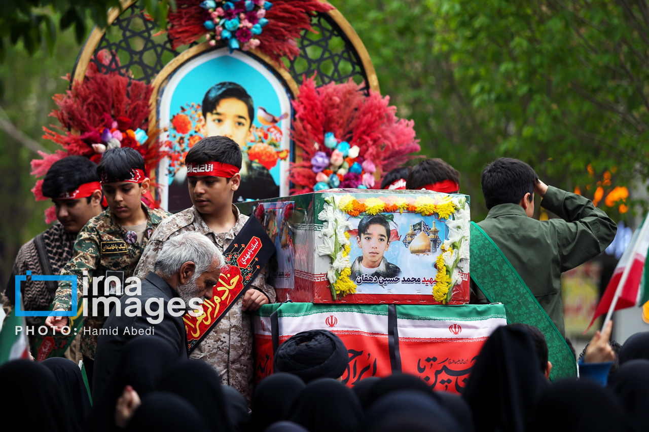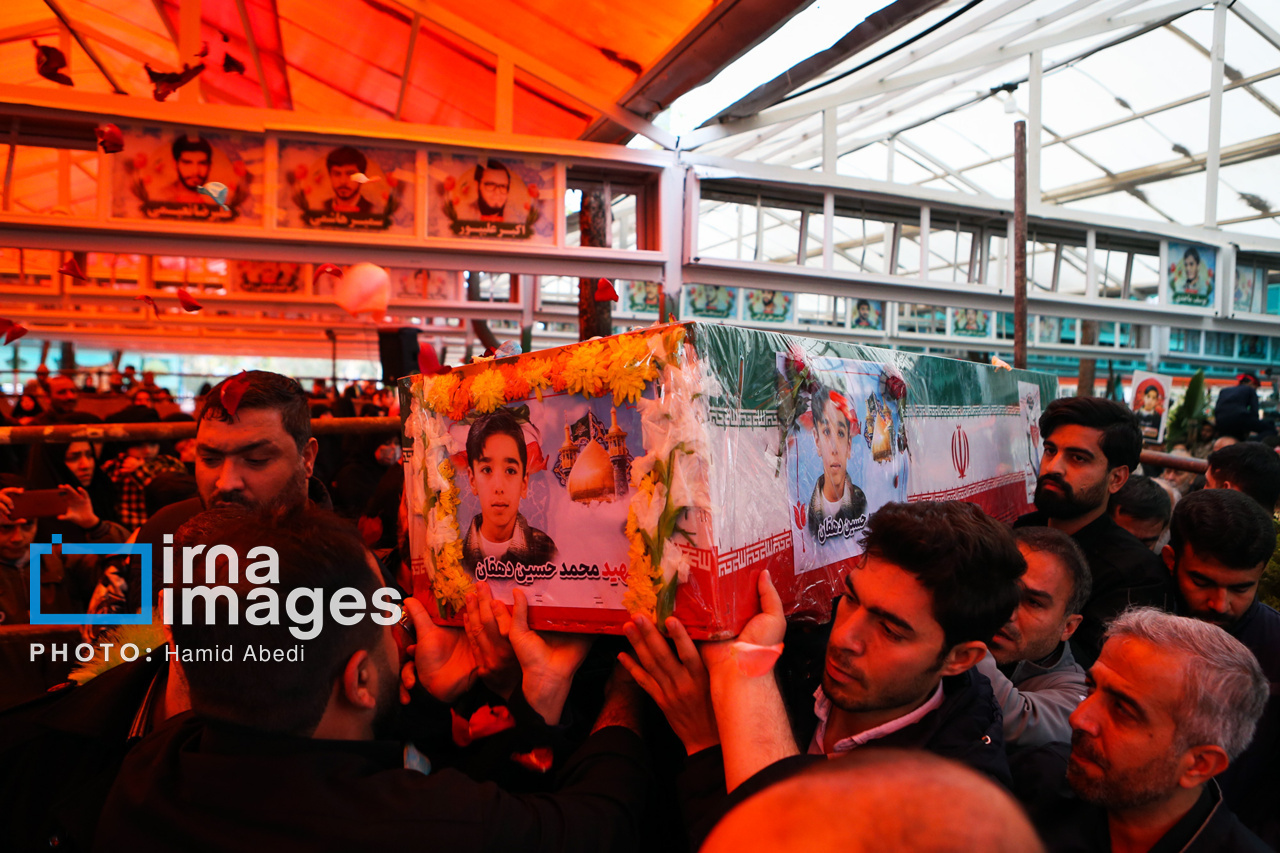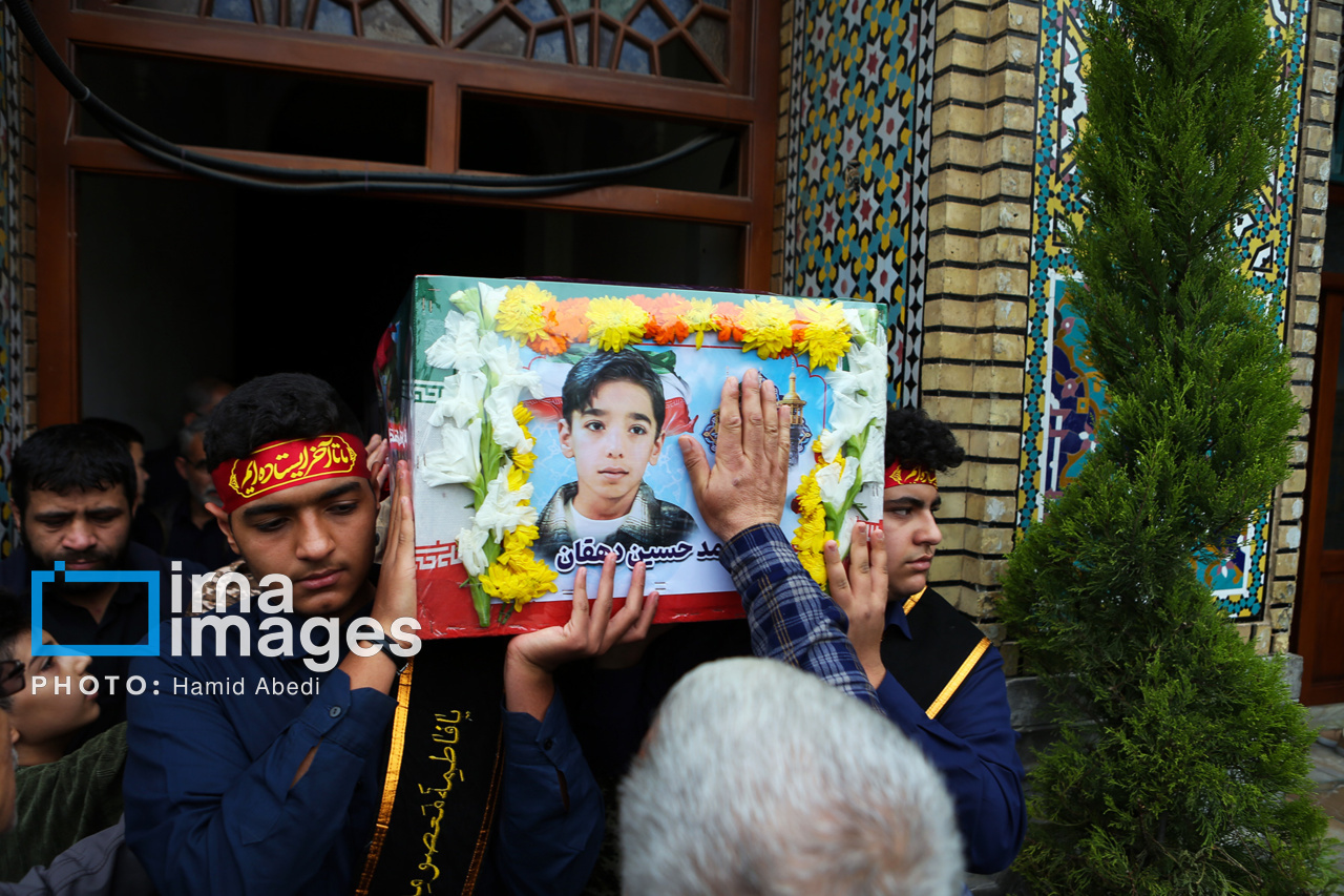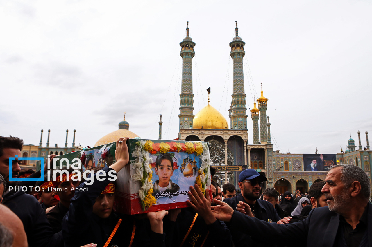 پیکر پاک دانشآموز شهید محمدحسین دهقان آخرین بازمانده خانواده سردار شهید اسماعیل دهقان، عصر پنجشنبه (۶ فروردین ۱۴۰۵) از حرم حضرت معصومه (س) تا گلزار شهدا علی بن جعفر (علیهالسلام) تشییع و پس از آن در کنار خانواده خود تدفین شد.|منبع: ایرنا