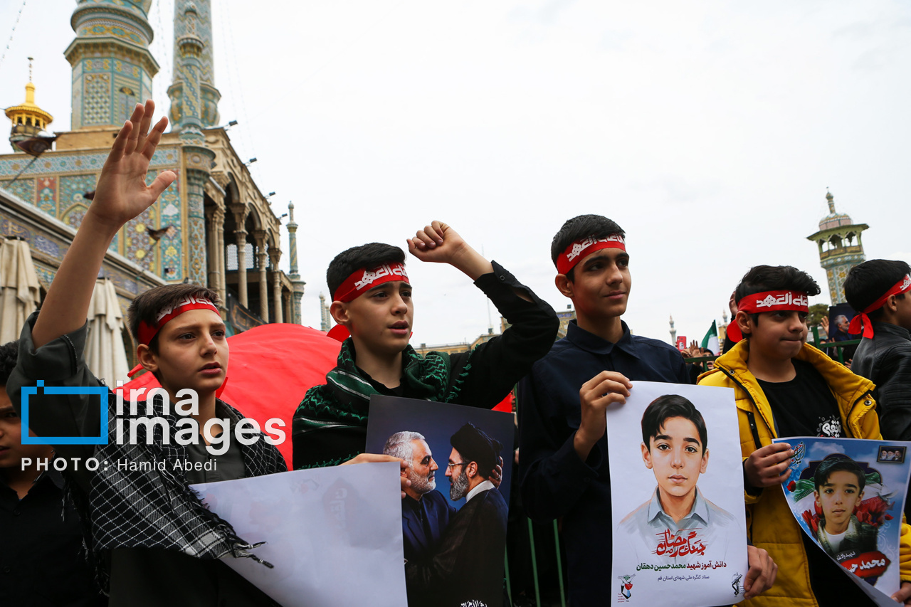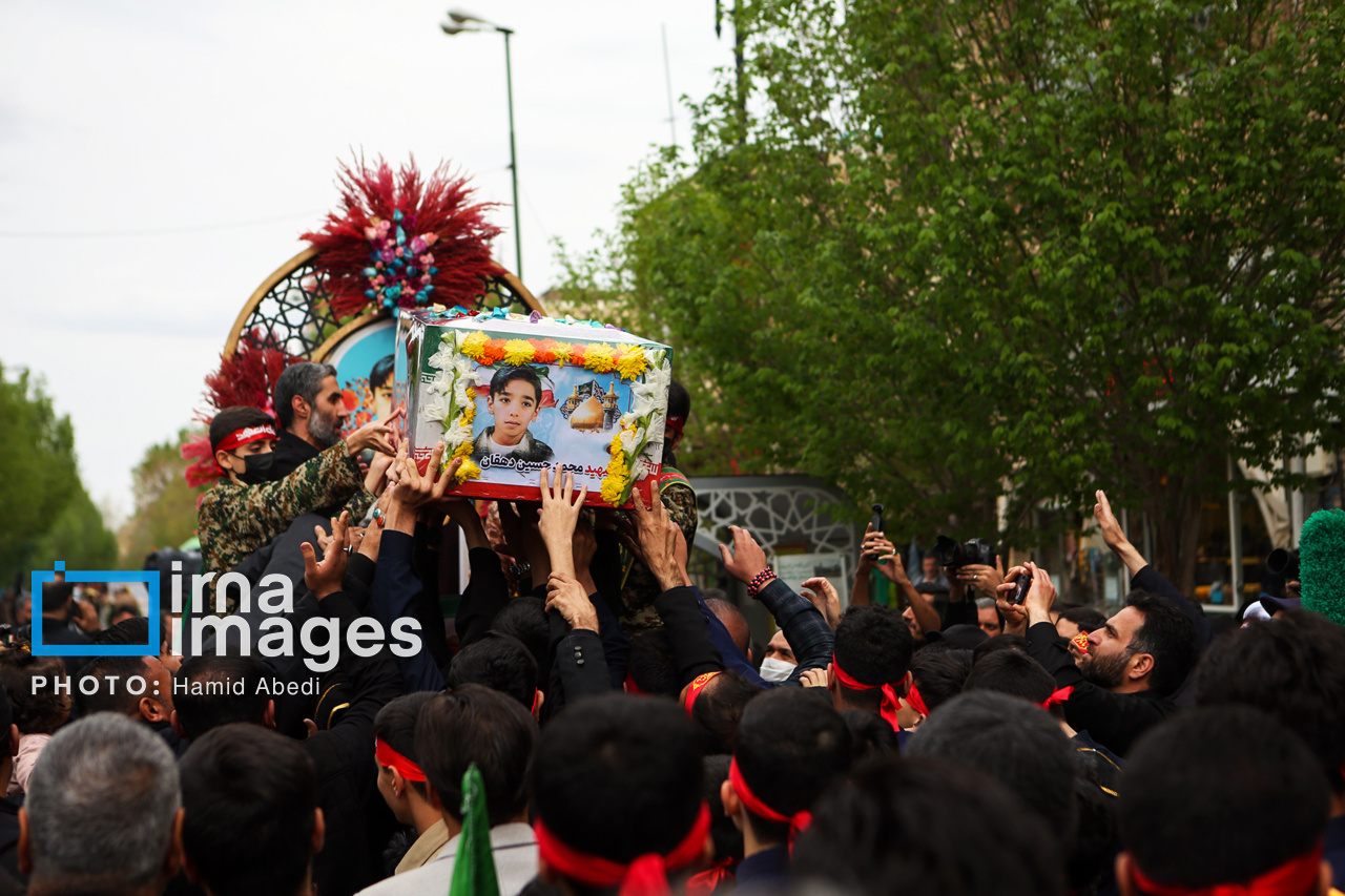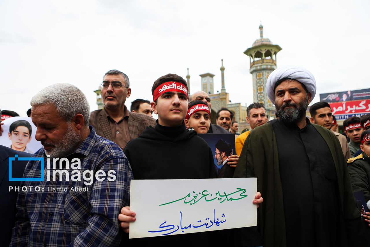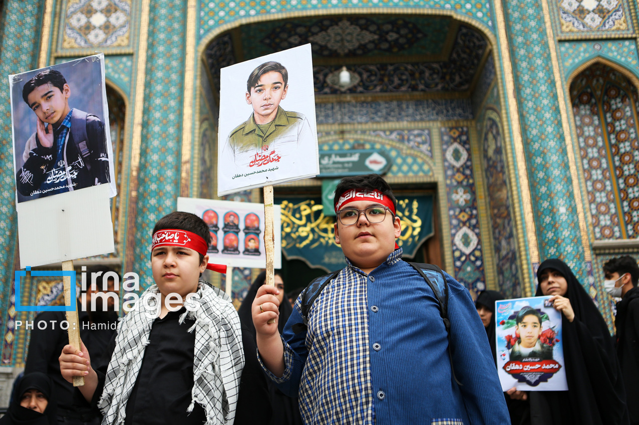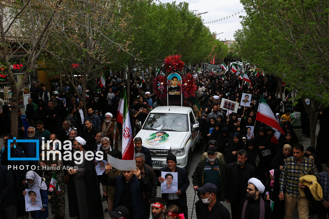 پیکر پاک دانشآموز شهید محمدحسین دهقان آخرین بازمانده خانواده سردار شهید اسماعیل دهقان، عصر پنجشنبه (۶ فروردین ۱۴۰۵) از حرم حضرت معصومه (س) تا گلزار شهدا علی بن جعفر (علیهالسلام) تشییع و پس از آن در کنار خانواده خود تدفین شد.|منبع: ایرنا