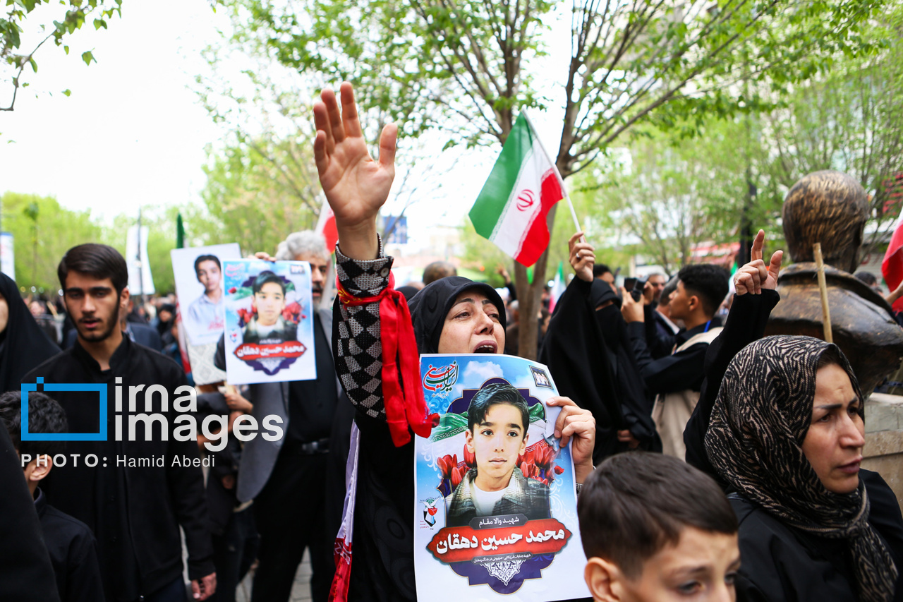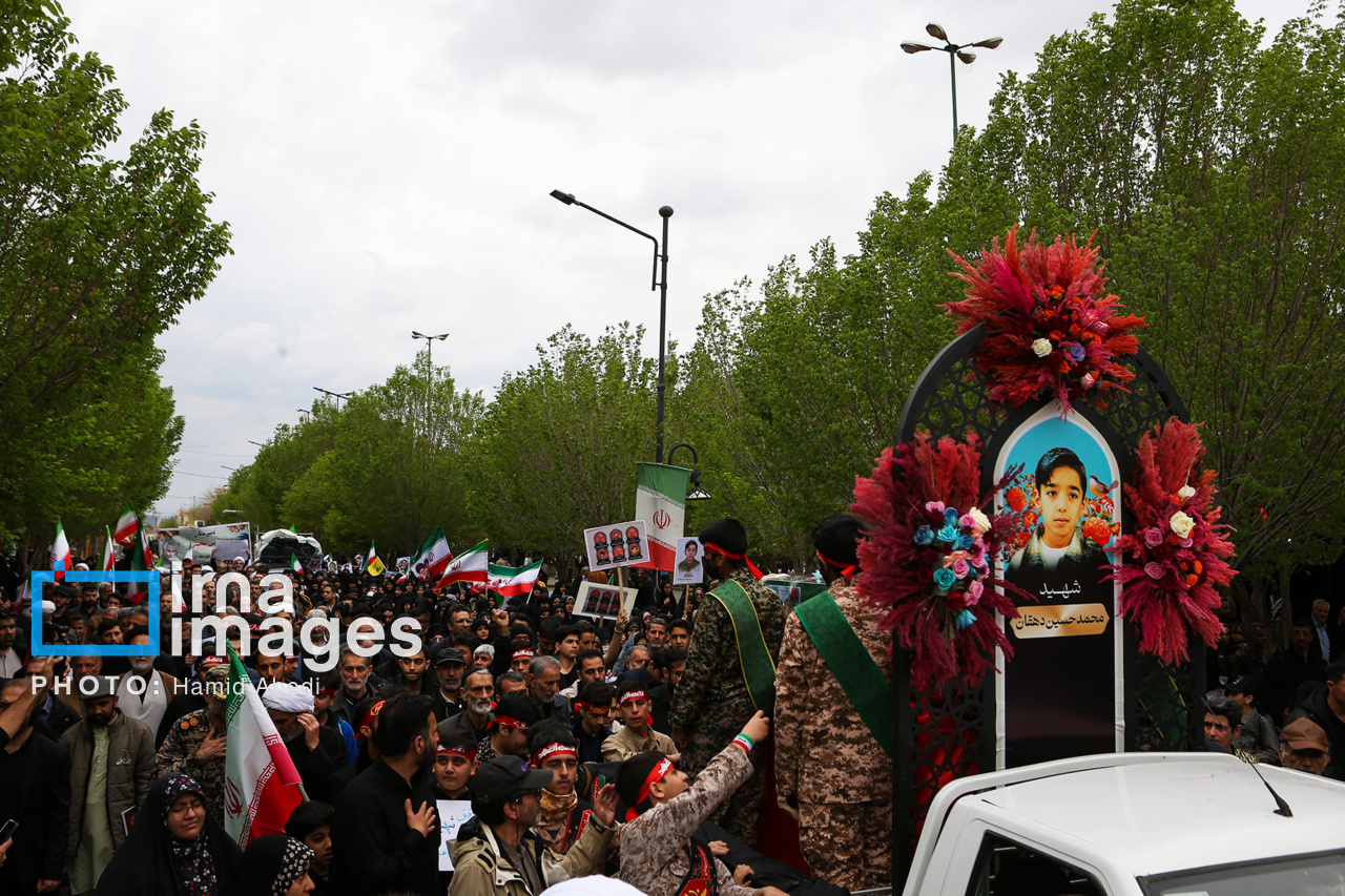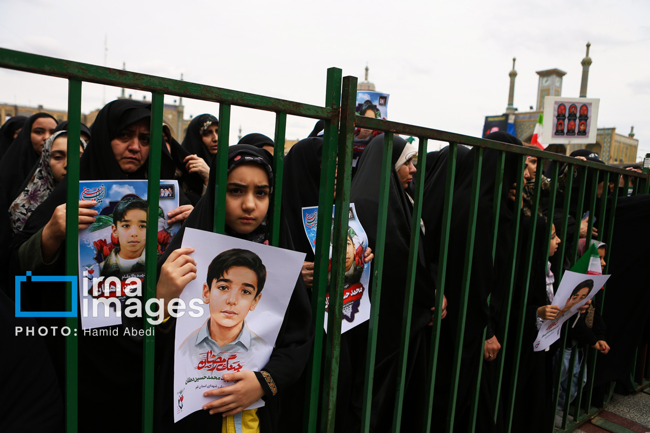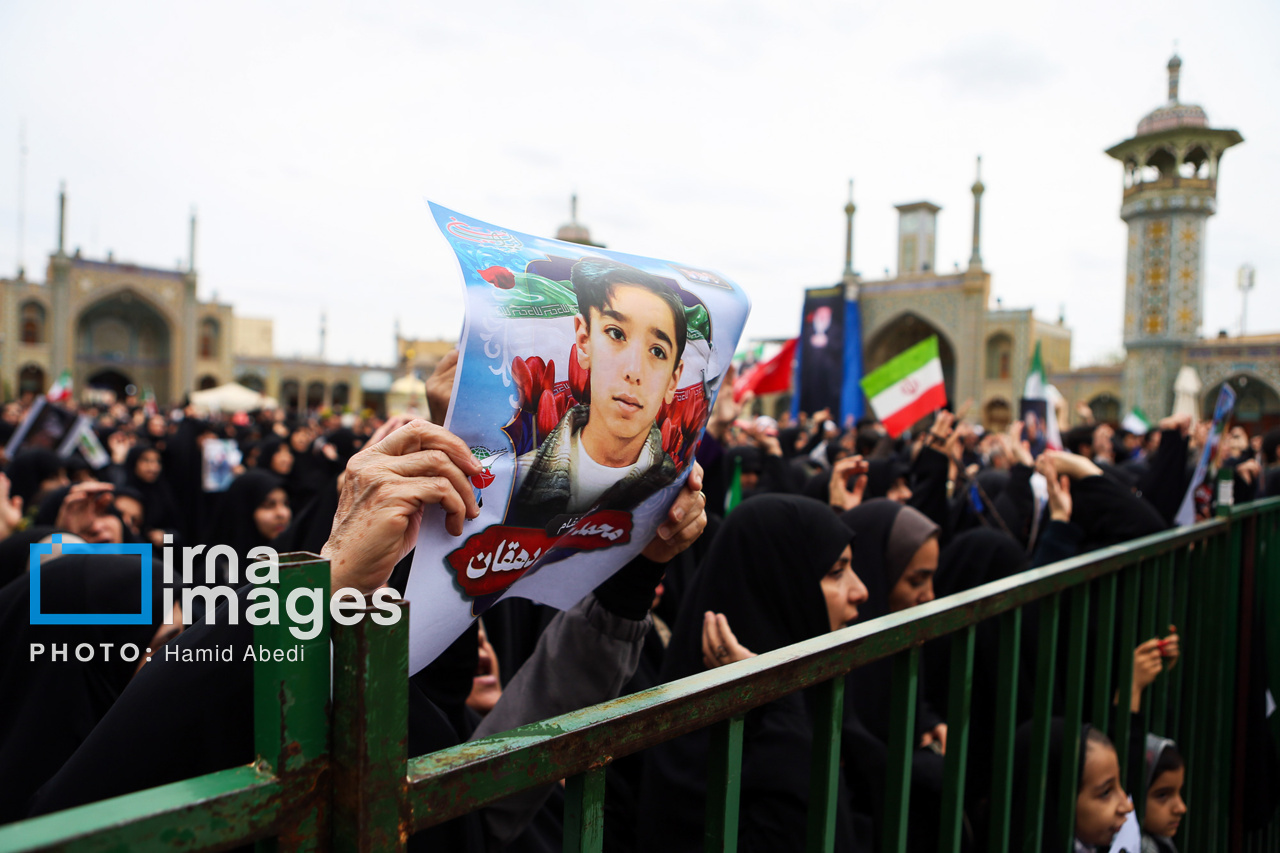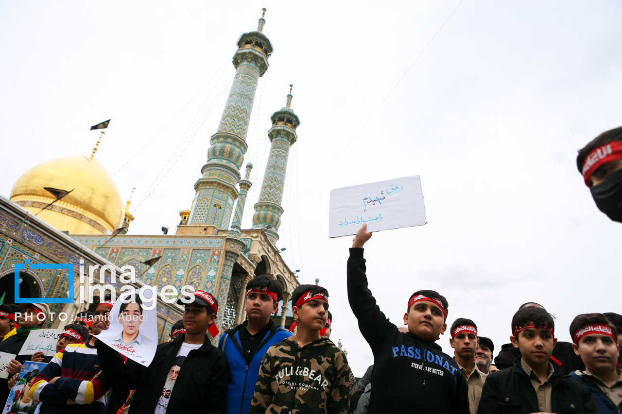 پیکر پاک دانشآموز شهید محمدحسین دهقان آخرین بازمانده خانواده سردار شهید اسماعیل دهقان، عصر پنجشنبه (۶ فروردین ۱۴۰۵) از حرم حضرت معصومه (س) تا گلزار شهدا علی بن جعفر (علیهالسلام) تشییع و پس از آن در کنار خانواده خود تدفین شد.|منبع: ایرنا