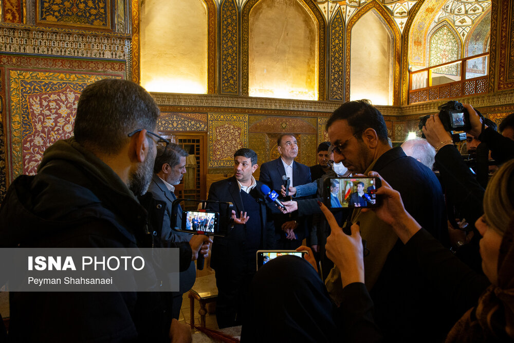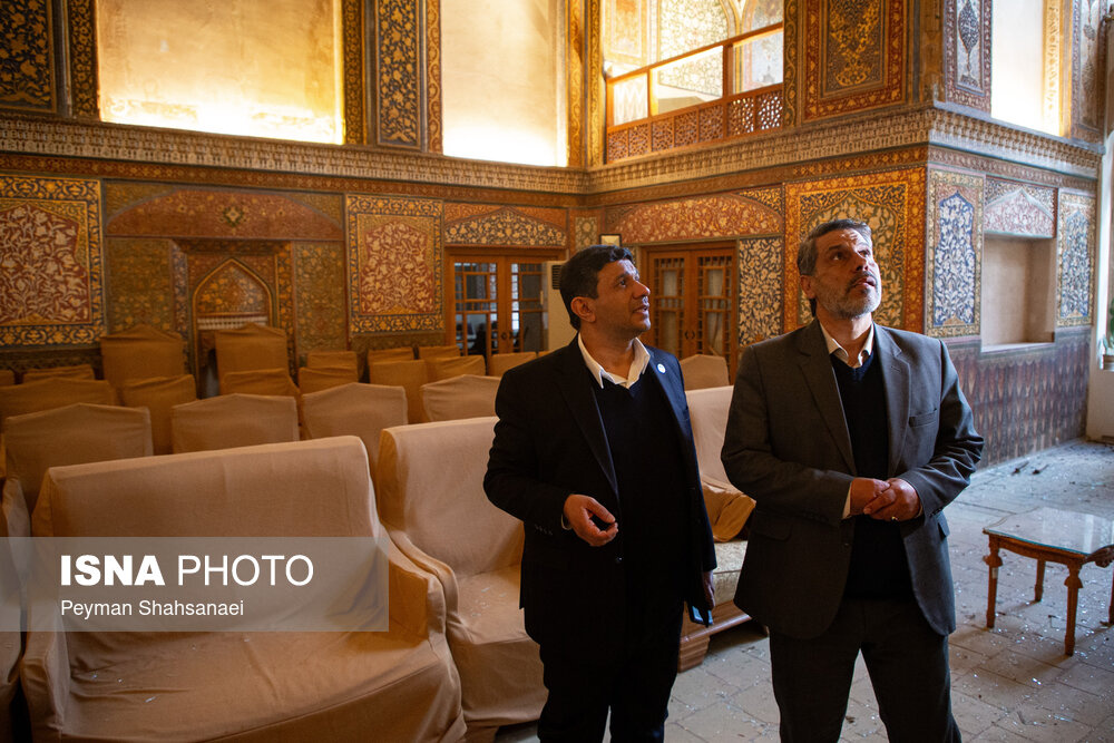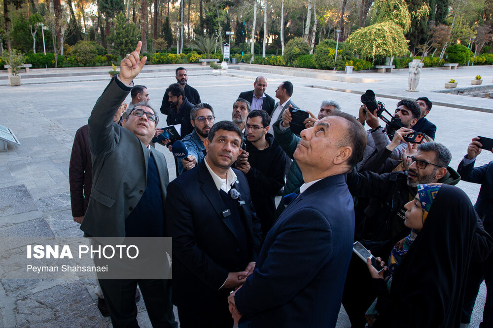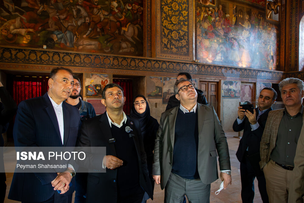 حسن فرطوسی، دبیر کل کمیسیون ملی یونسکو در ایران به همراه هیئت همراه، عصر امروز شنبه ۸ فرودین ۱۴۰۵ از تالار اشرف و کاخ چهلستون اصفهان که در حمله آمریکایی - صهیونی آسیب دیده بود، بازدید کرد. |منبع: ایسنا