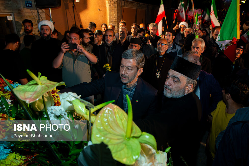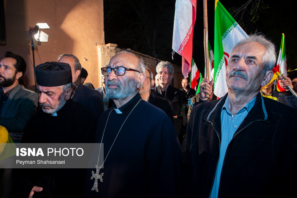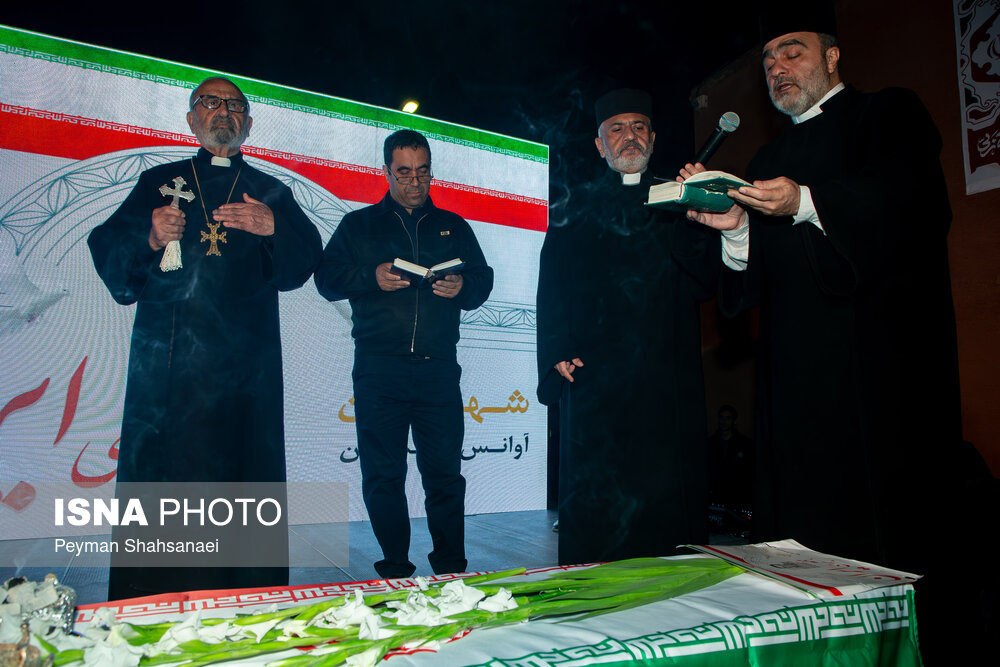 مراسم وداع با پیکر شهید «آوانس سیمونیان»، اولین شهید مسیحی جنگ رمضان استان اصفهان شامگاه دوشنبه ۱۰ فروردین ۱۴۰۵ با حضور پرشور مردم اصفهان در محله جلفا این شهر برگزار شد. |منبع: ایسنا