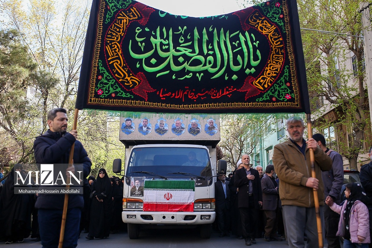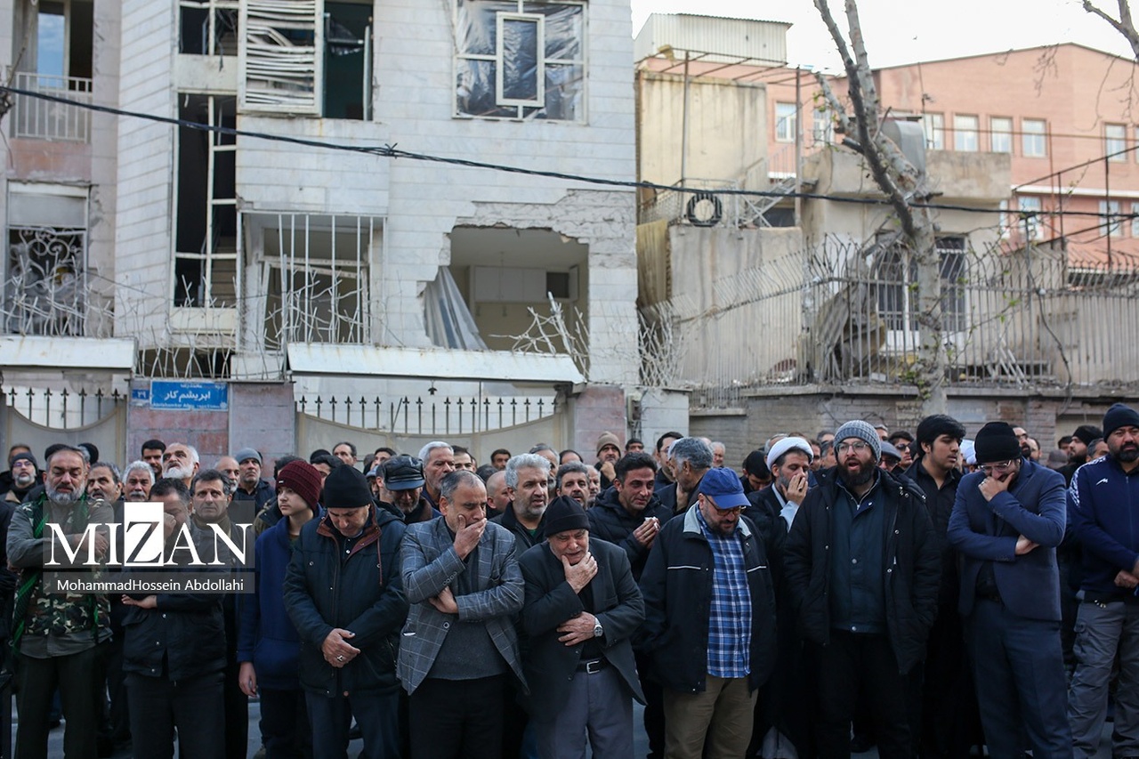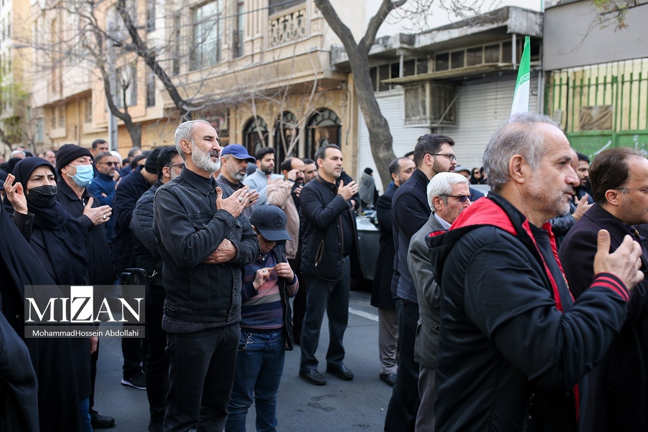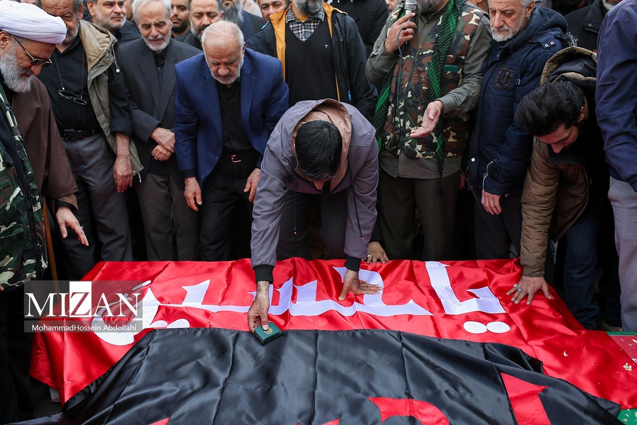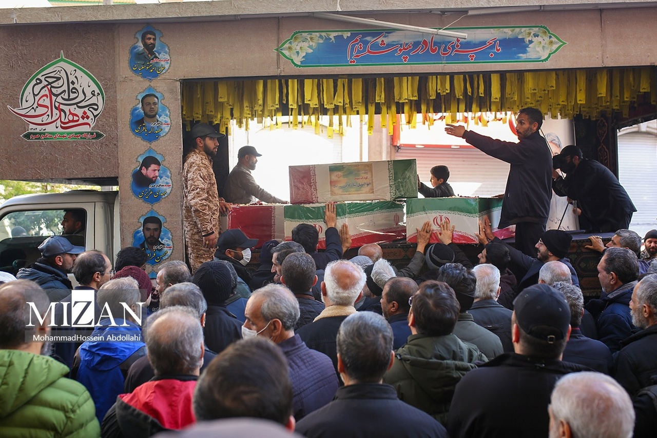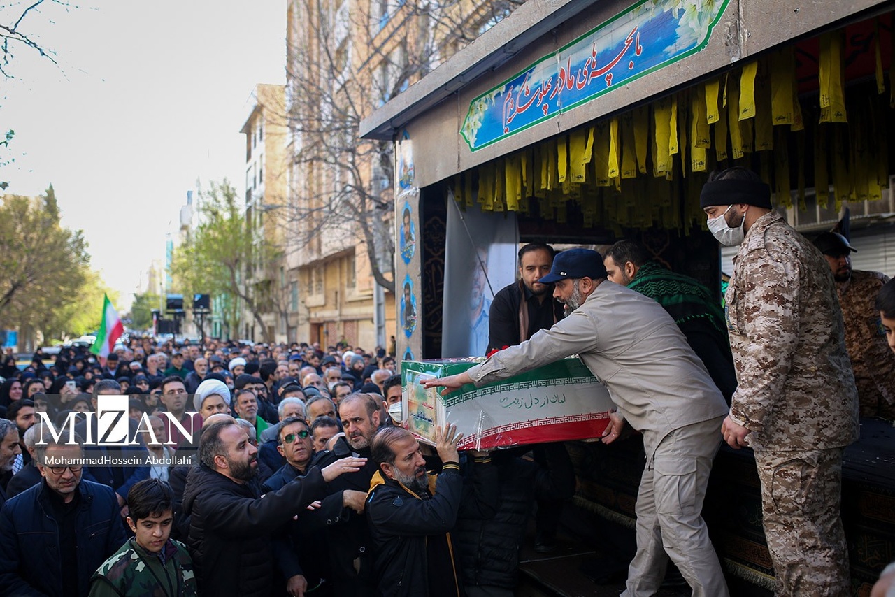 مراسم تشییع پیکرهای شهیدان محمدحسین شادکامی، شهیده زهرا سبعی، زینب شادکامی ۱۳ ساله و ابوالفضل شادکامی ۷ ساله روز دوشنبه (۱۰ فروردین ۱۴۰۵) با حضور گسترده مردم در خیابان دماوند تهران برگزار شد.|منبع: میزان