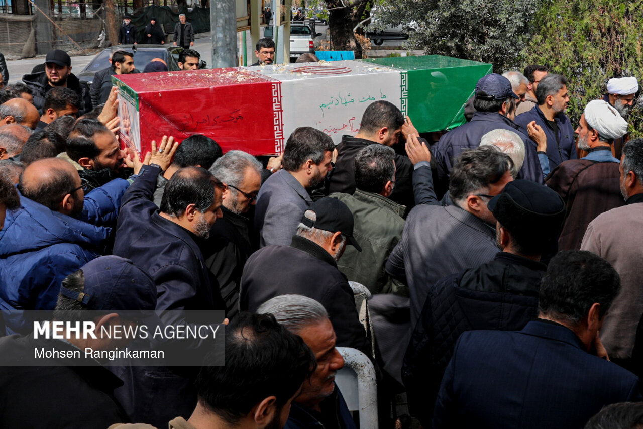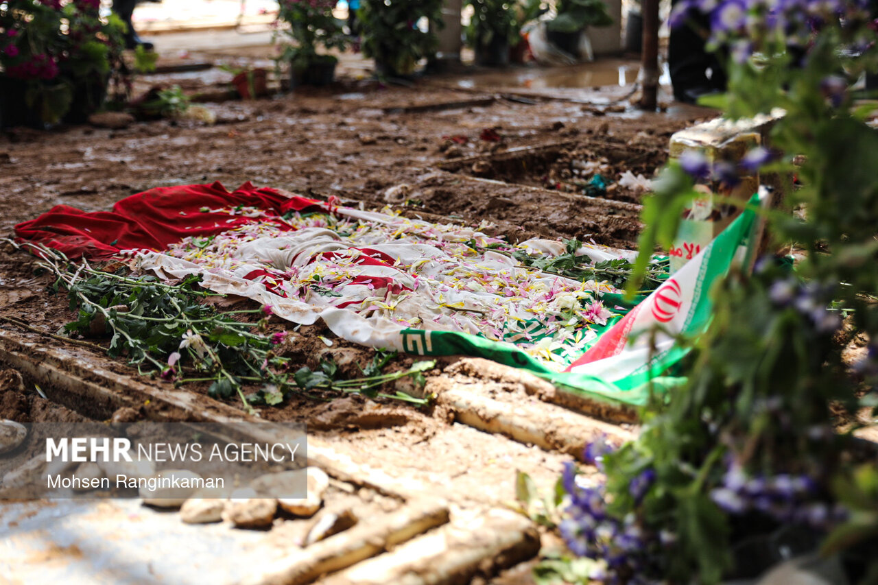 مراسم وداع با پیکر مطهر شهدای حملات صهیونی-آمریکایی در معراج شهدای بهشت زهرا برگزار و پیکر مطهر شهدا در قطعه ۴۲ بهشت حضرت زهرا (سلام الله علیها) دفن شد.|منبع: مهر