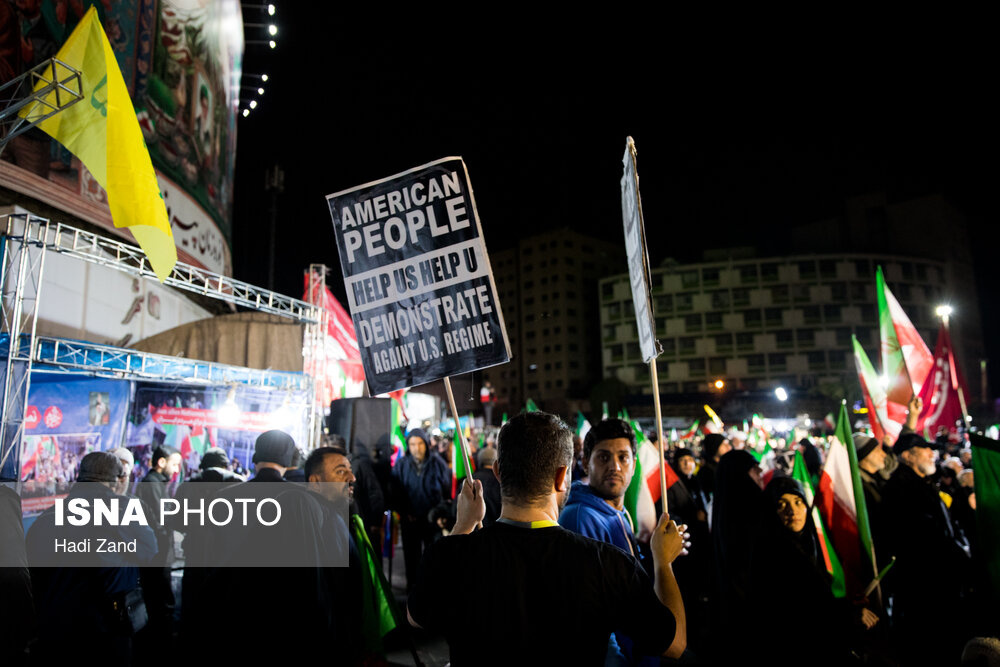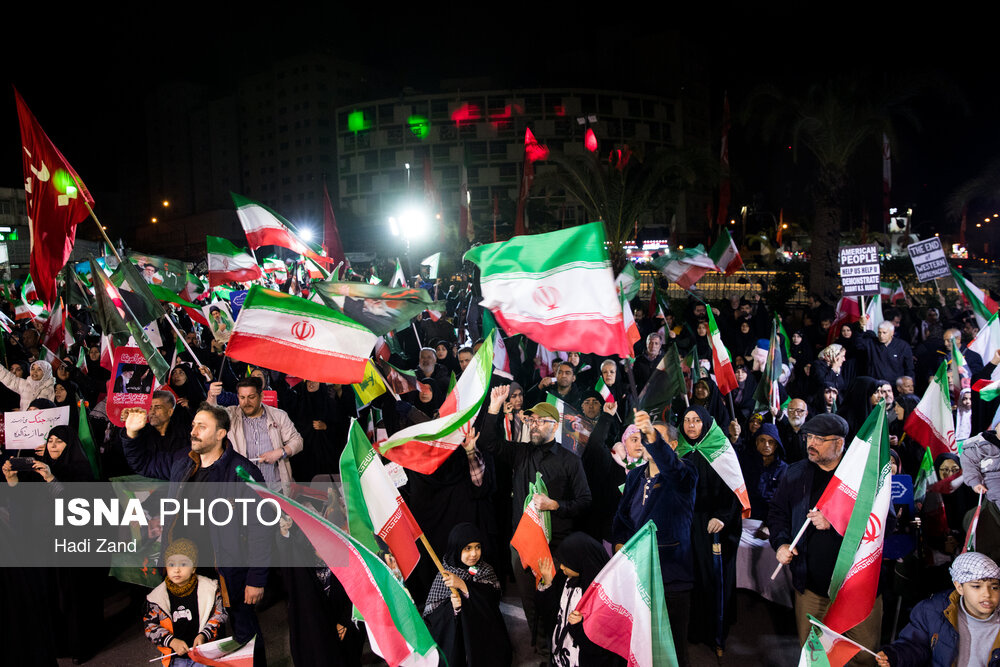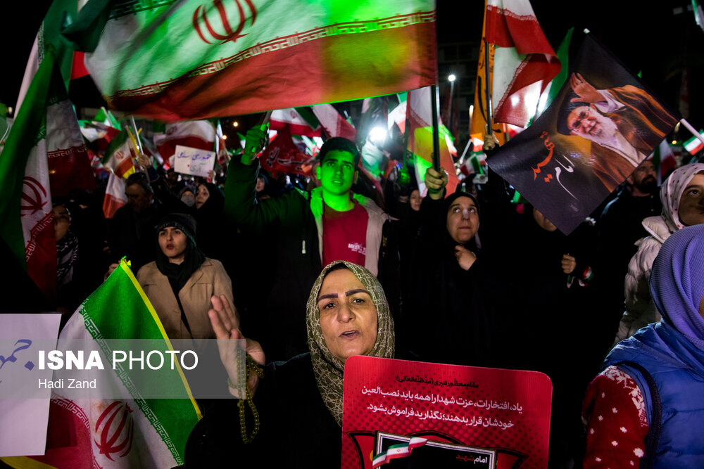 آحاد مردم تهران شامگاه سهشنبه (۱۱فروردین) همصدا با مردم دیگر شهرهای کشور، آئین یومالله ۱۲ فروردین را در میادین اصلی پایتخت برگزار کردند. این مراسم امسال متفاوت با سالهای گذشته و در حالی که یک ماه از تجاوز آمریکا و رژیم صهیونیستی به خاک کشورمان میگذرد، با حضور پرشور مردم برگزار شد. تجمعات شبانه مردم تهران امشب مزین به سرود غرورآفرین ملی ایران شد.|منبع: ایسنا