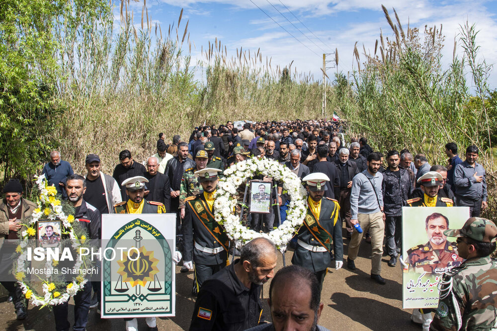 مراسم تشییع پیکر شهید والامقام سرتیپ دوم شهید «مجید ذکریایی» فرمانده یگان حفاظت سازمان منابع طبیعی و آبخیزداری کشور، امروز سه شنبه ۱۱ فروردین ۱۴۰۵ با حضور پرشور مردم شهرستان سیمرغ و شهرهای اطراف تشییع و سپس در مزار آقا سید شمس الدین روستای کلهو دشت بابل به خاک سپرده شد. سرهنگ مجید ذکریایی که در حمله روز شنبه آمریکا و رژیم صهیونیستی به سازمان منابع طبیعی به سختی مجروح شده بود، شامگاه یکشنبه به علت شدت جراحات شهد شهادت نوشید و به دیدار حق شتافت.|منبع: ایسنا