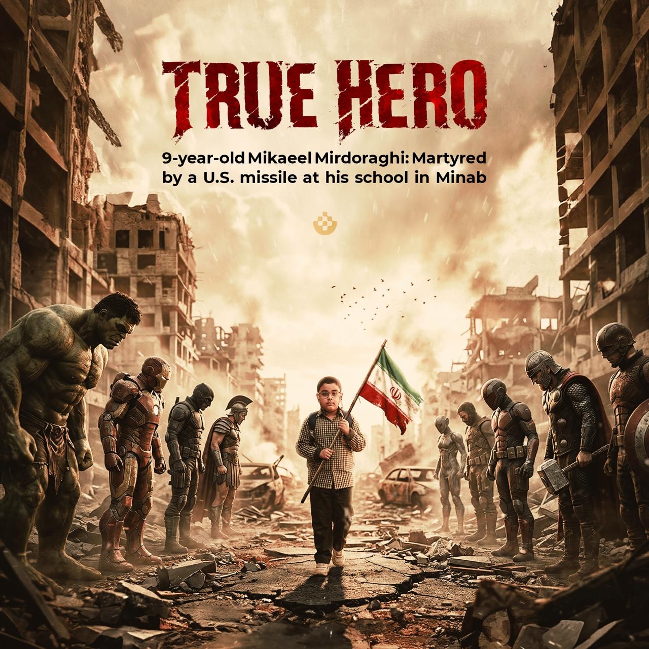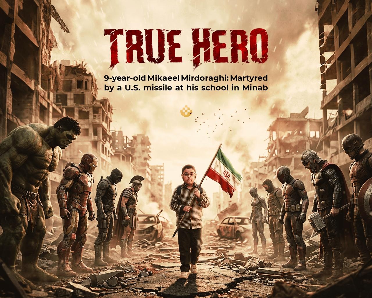 در روزگاری که ابرقهرمانان برای نجاتِ بشر داستانهای تخیلی میبافند، دستهای کوچک تو در میان آوارِ مدرسه میناب، سنگینترین پیام تاریخ را به دوش کشید. قهرمانانِ واقعی پرواز نمیکنند، آنها روی زمین میایستند و با خونِ خود، افسانهها را شرمسار میکنند.