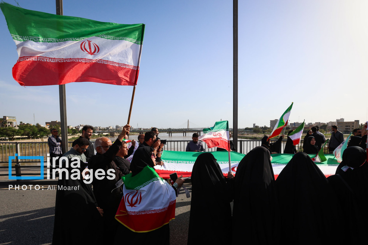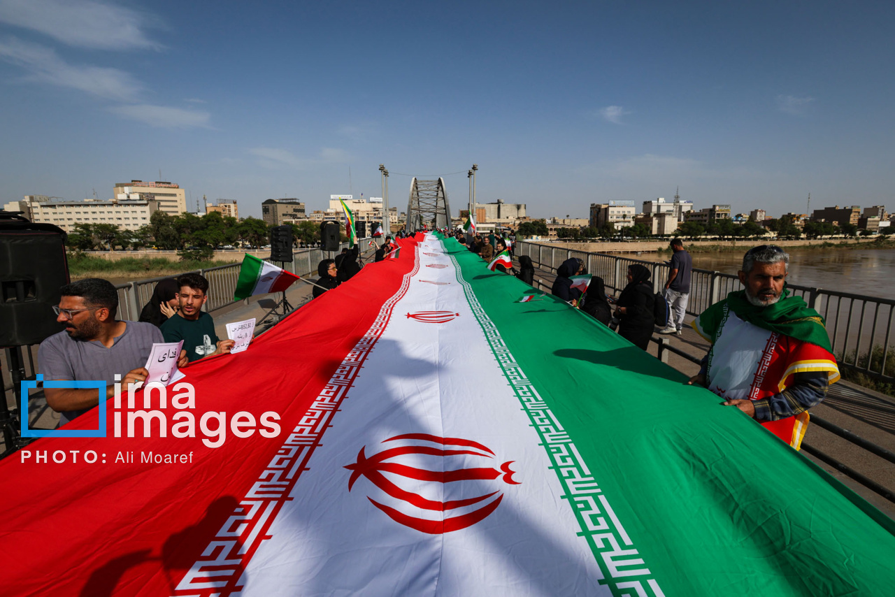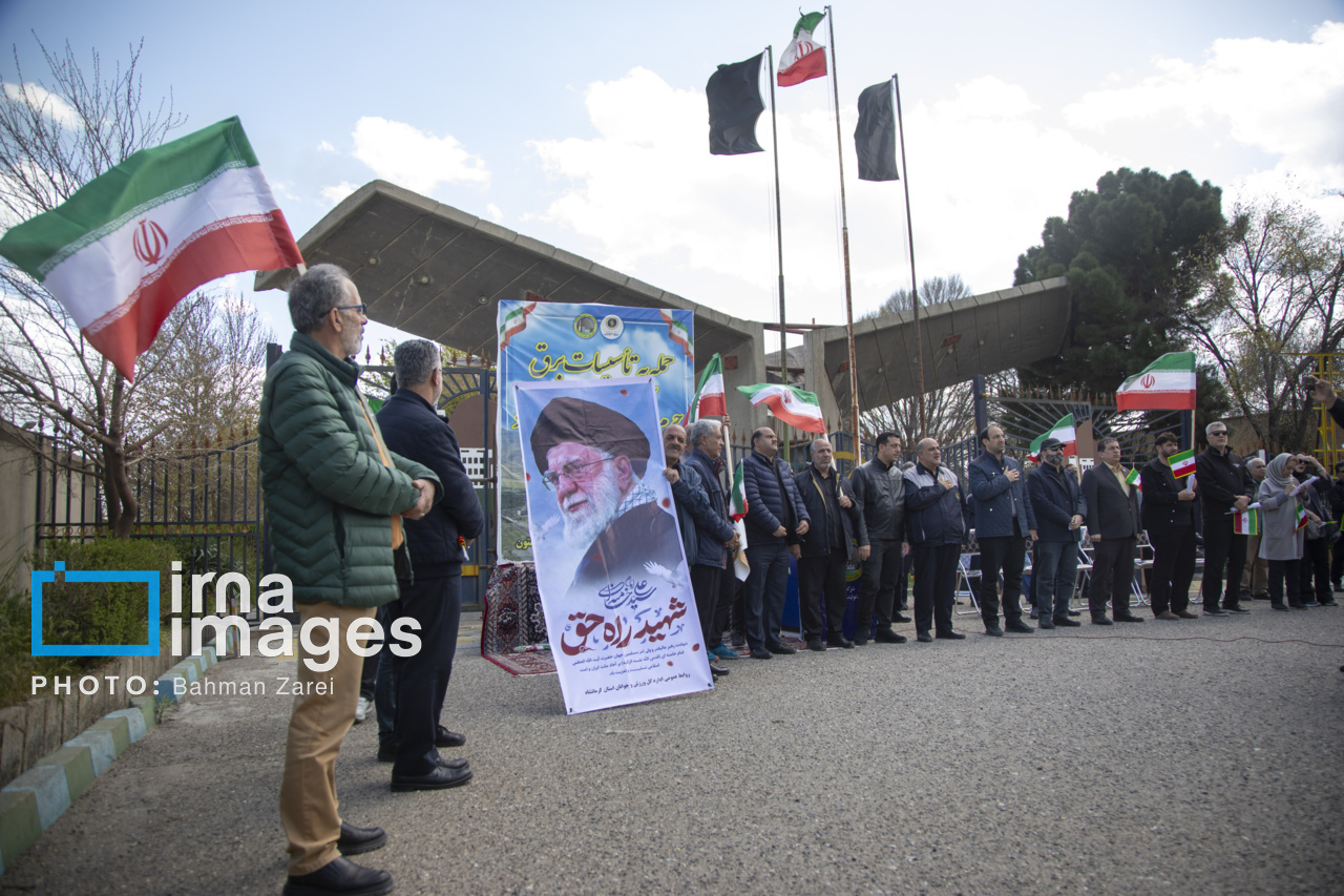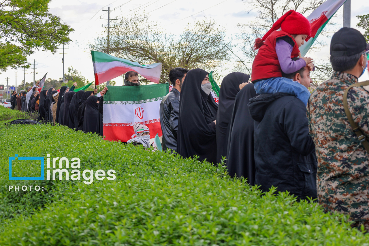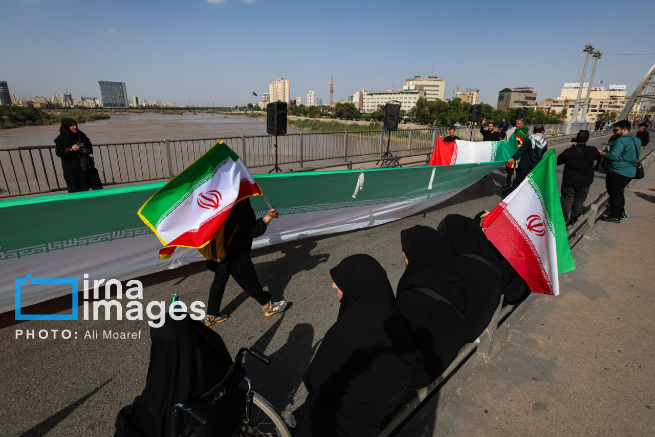 مردم سراسر کشور، سه شنبه (۱۸ فروردین ۱۴۰۵) در اقدامی نمادین و با هدف ابراز انزجار از تهدیدات و اقدامات خصمانه آمریکا، اطراف نیروگاهها و پلها تشکیل دادند. این حرکت مردمی در واکنش به اظهارات و تهدیداتی صورت گرفت که اخیرا علیه منافع ملی و امنیت جمهوری اسلامی ایران مطرح شده است. برگزارکنندگان این تجمع هدف از تشکیل زنجیره انسانی را نمایش اقتدار و اراده ملت ایران برای دفاع از دستاوردهای انقلاب اسلامی و پاسداری از تمامیت ارضی کشور عنوان کردند.|منبع: ایرنا