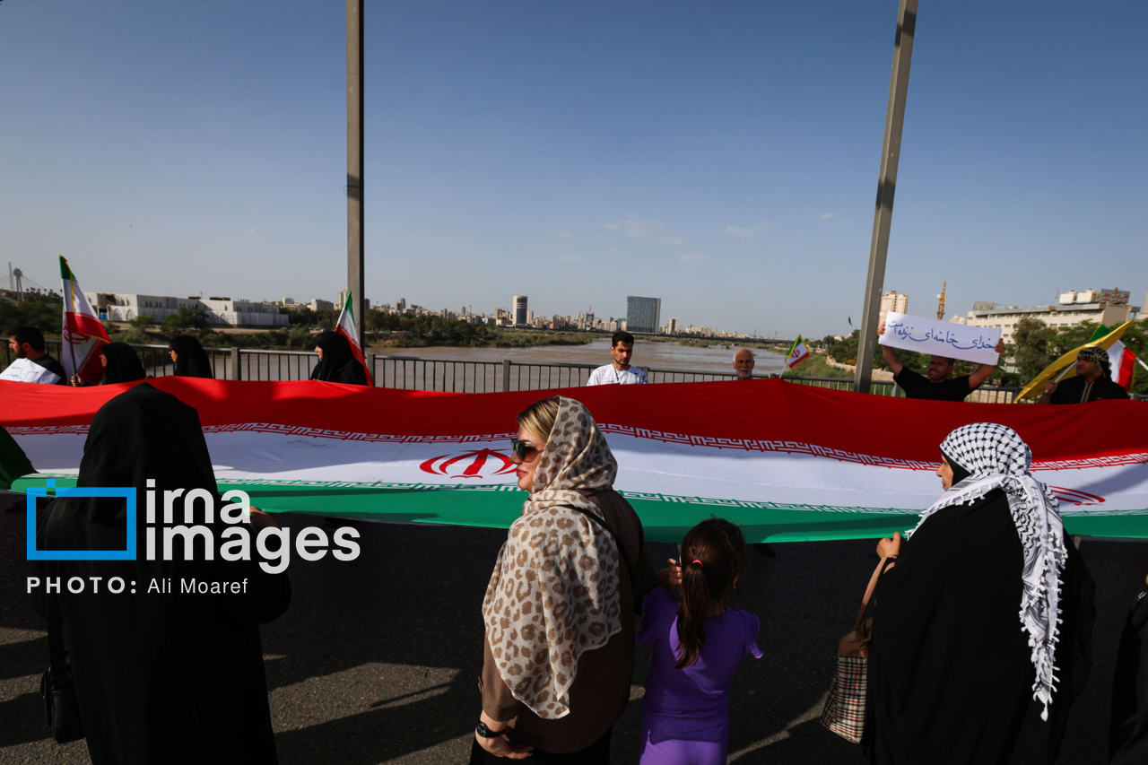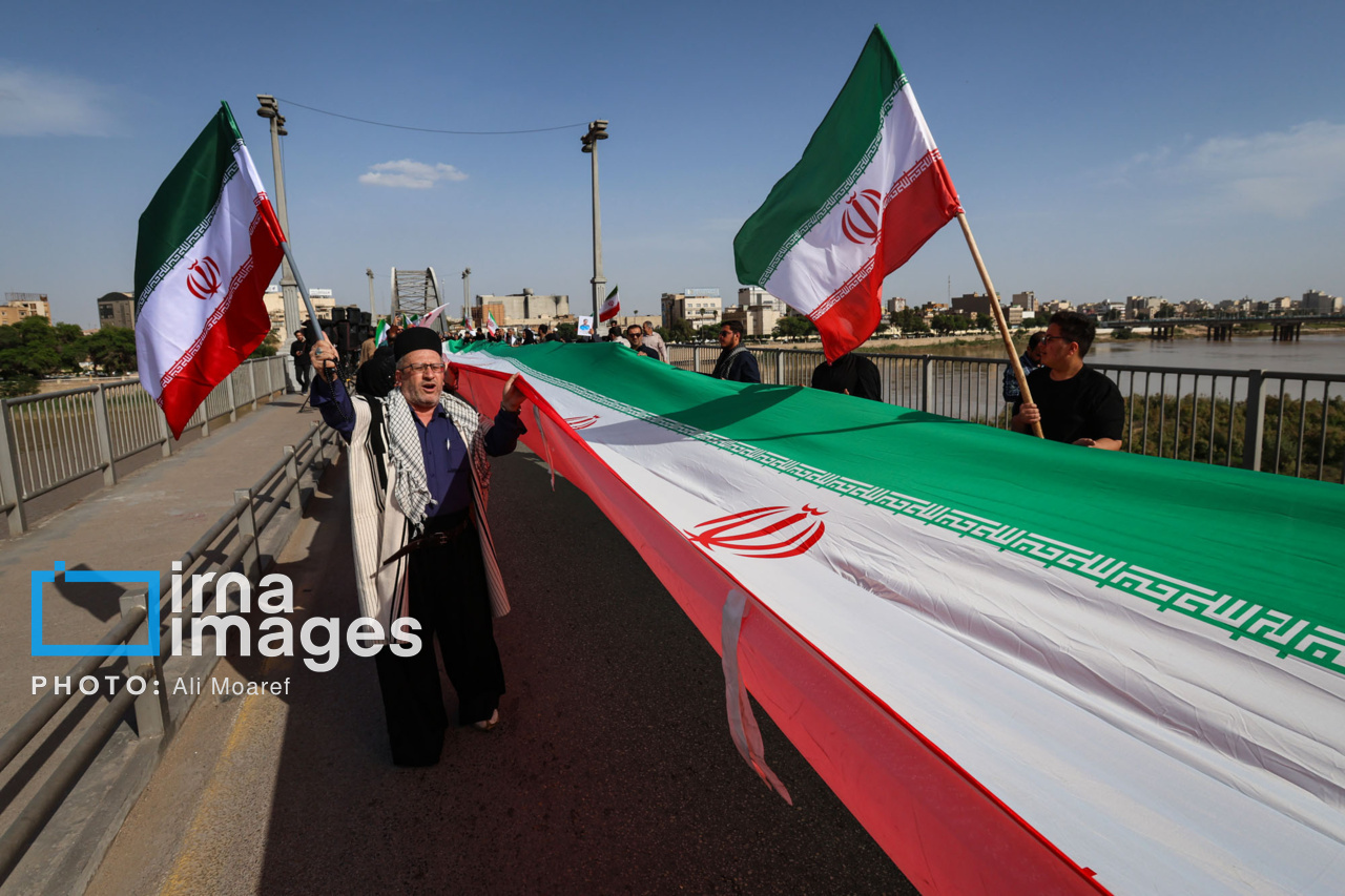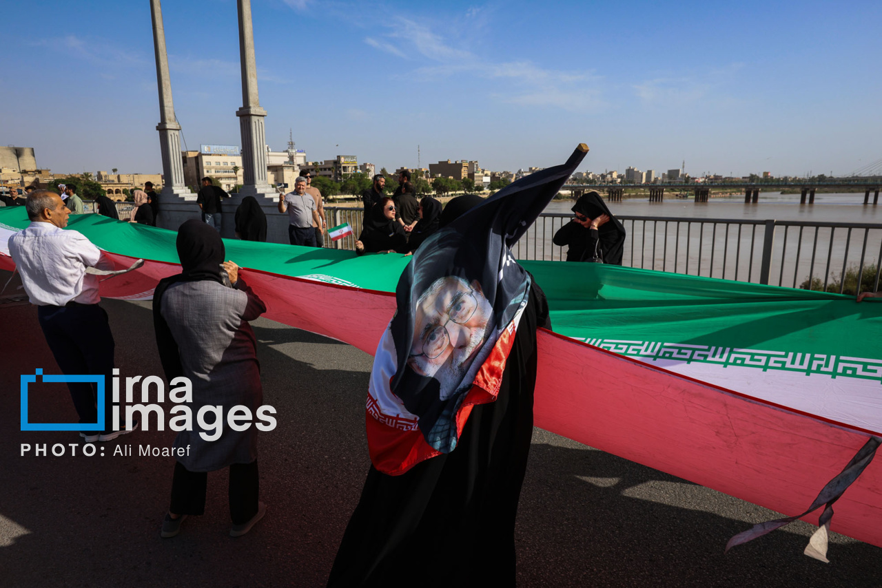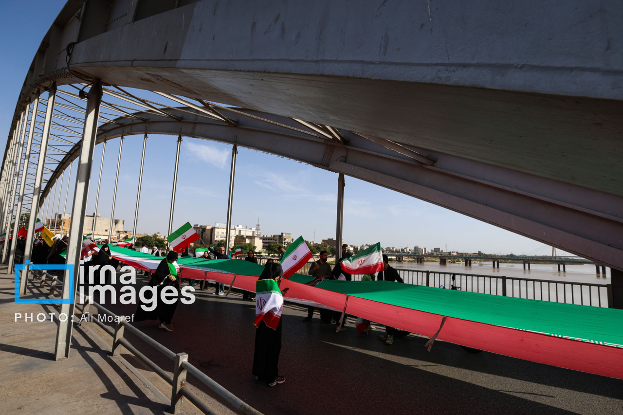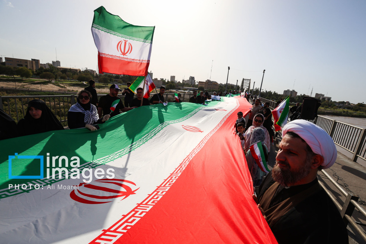 مردم سراسر کشور، سه شنبه (۱۸ فروردین ۱۴۰۵) در اقدامی نمادین و با هدف ابراز انزجار از تهدیدات و اقدامات خصمانه آمریکا، اطراف نیروگاهها و پلها تشکیل دادند. این حرکت مردمی در واکنش به اظهارات و تهدیداتی صورت گرفت که اخیرا علیه منافع ملی و امنیت جمهوری اسلامی ایران مطرح شده است. برگزارکنندگان این تجمع هدف از تشکیل زنجیره انسانی را نمایش اقتدار و اراده ملت ایران برای دفاع از دستاوردهای انقلاب اسلامی و پاسداری از تمامیت ارضی کشور عنوان کردند.|منبع: ایرنا
