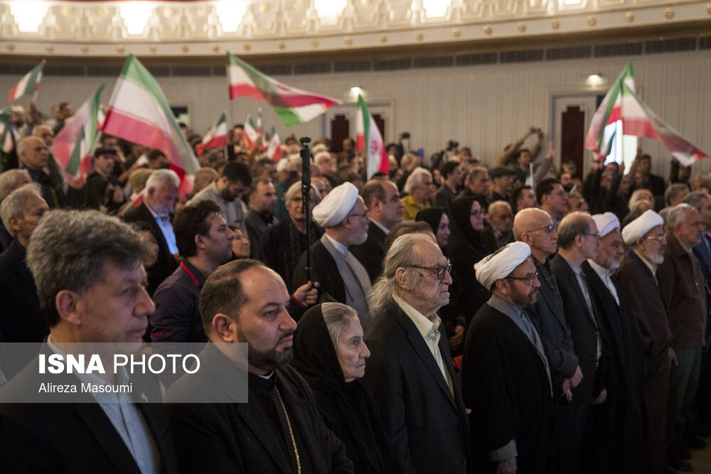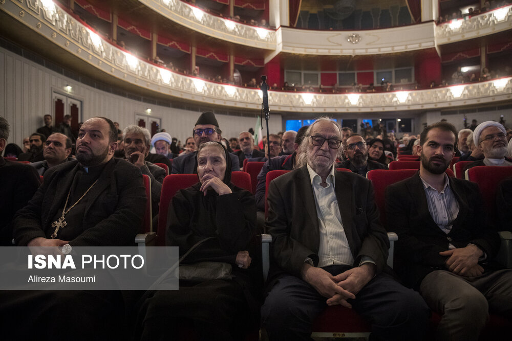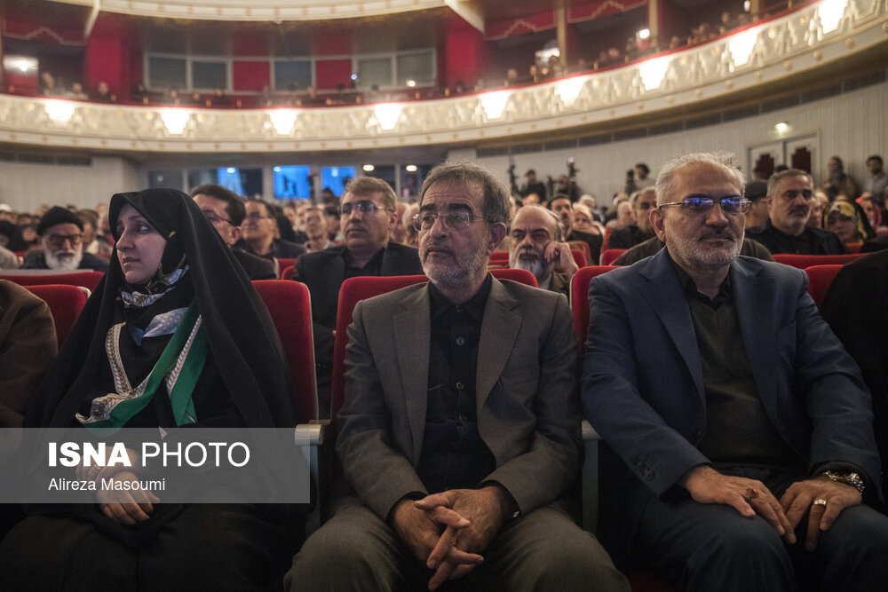 آیین سوگ اربعین رهبر شهید؛ "امین ایران"، یکشنبه ۲۳ فروردین ۱۴۰۵ با حضور سید عباس صالحی، وزیر فرهنگ و ارشاد اسلامی، حسین سیمایی صراف، وزیر علوم و جمعی از اصحاب فرهنگ و هنر در تالار وحدت برگزار شد.|منبع: ایسنا