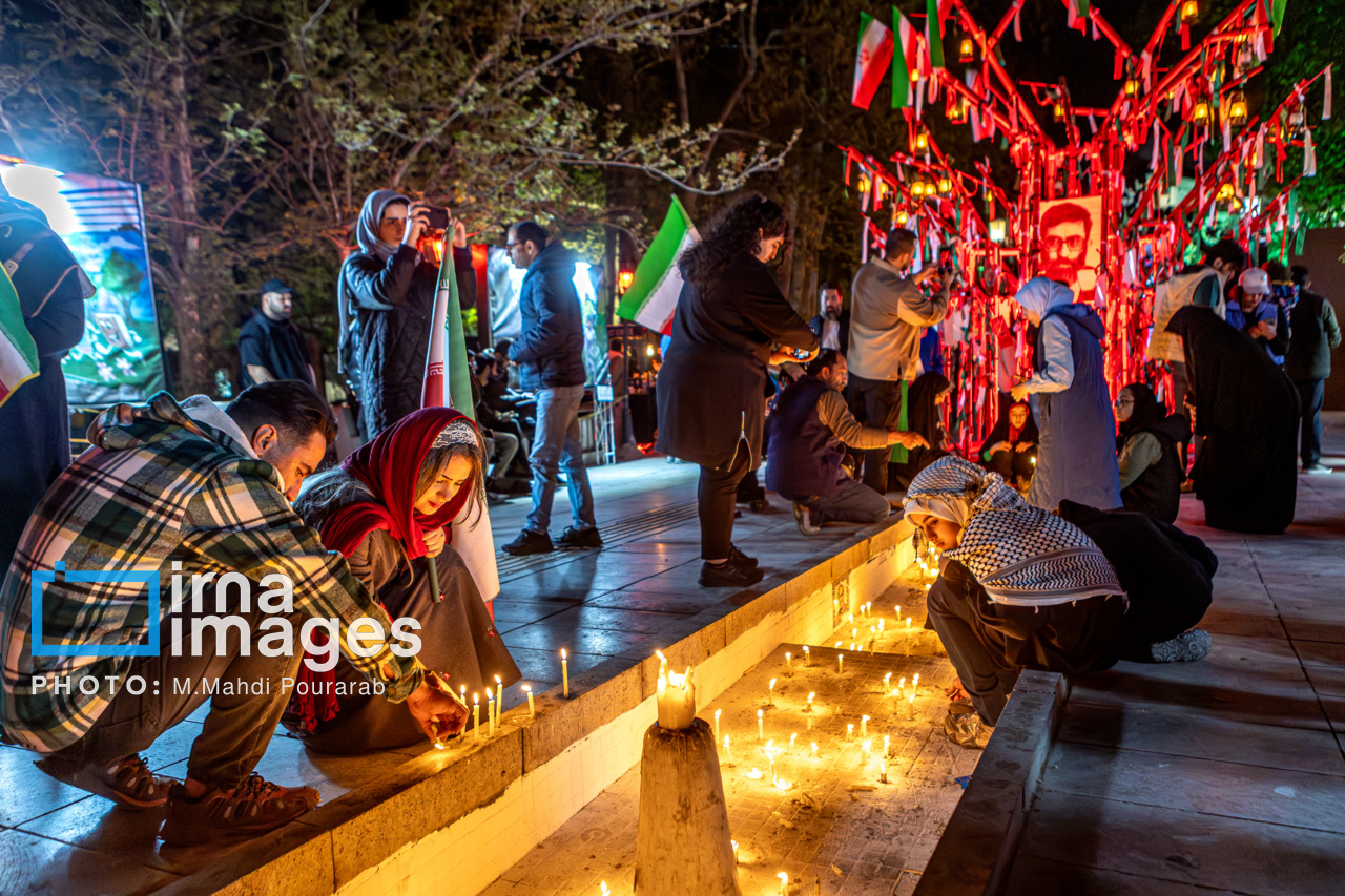 هنرمندان و دوستداران فرهنگ و هنر در واکنش به حملات هوایی آمریکا و رژیم صهیونیستی از ۱۷ فروردین به مدت ۱۰ شب، در باغ فردوس تهران گرد هم میآیند. همخوانی سرودهای ملی و حماسی، اجرای موسیقی زنده، برگزاری یادبود کودکان شهید میناب و روشن کردن ۱۰ هزار شمع به یاد شهدای جنگ از جمله برنامههای این رویداد است.|منبع: ایرنا