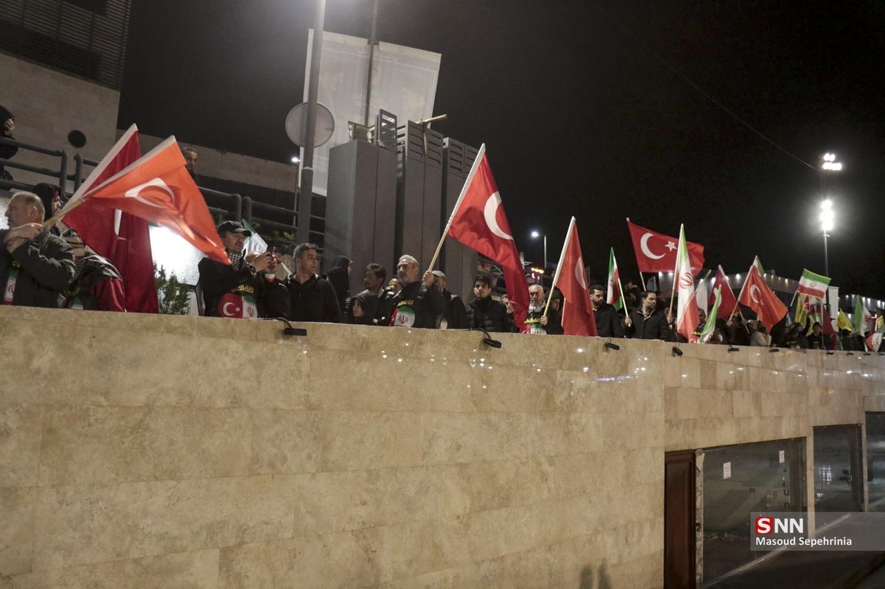 حضور نخبگان فرهنگی و رسانهای ترکیه در اجتماع مردمی حمایت از جمهوری اسلامی ایران در تبریز|منبع: دانشجو