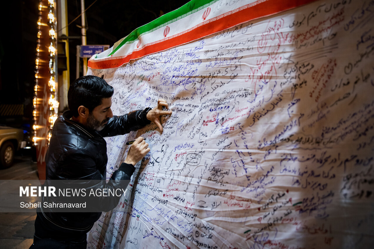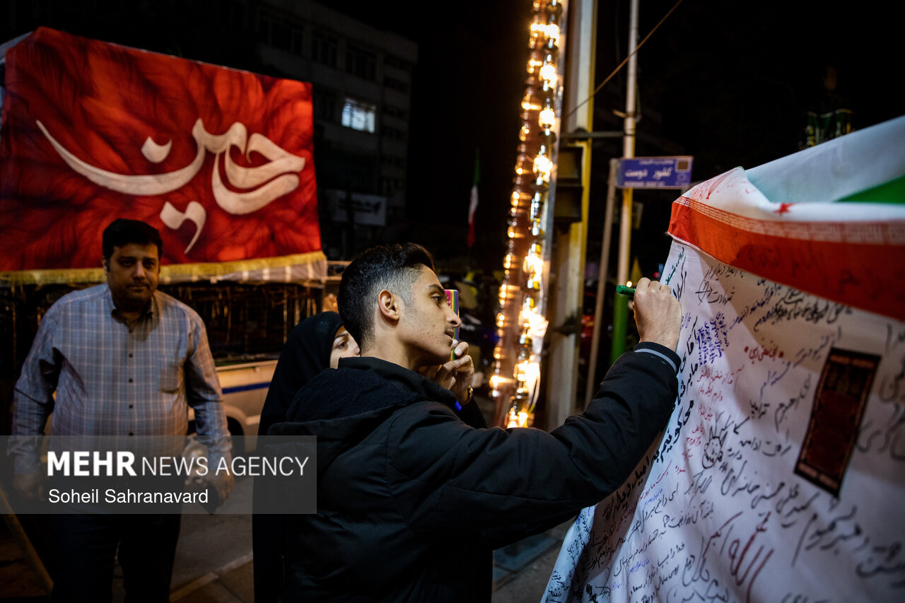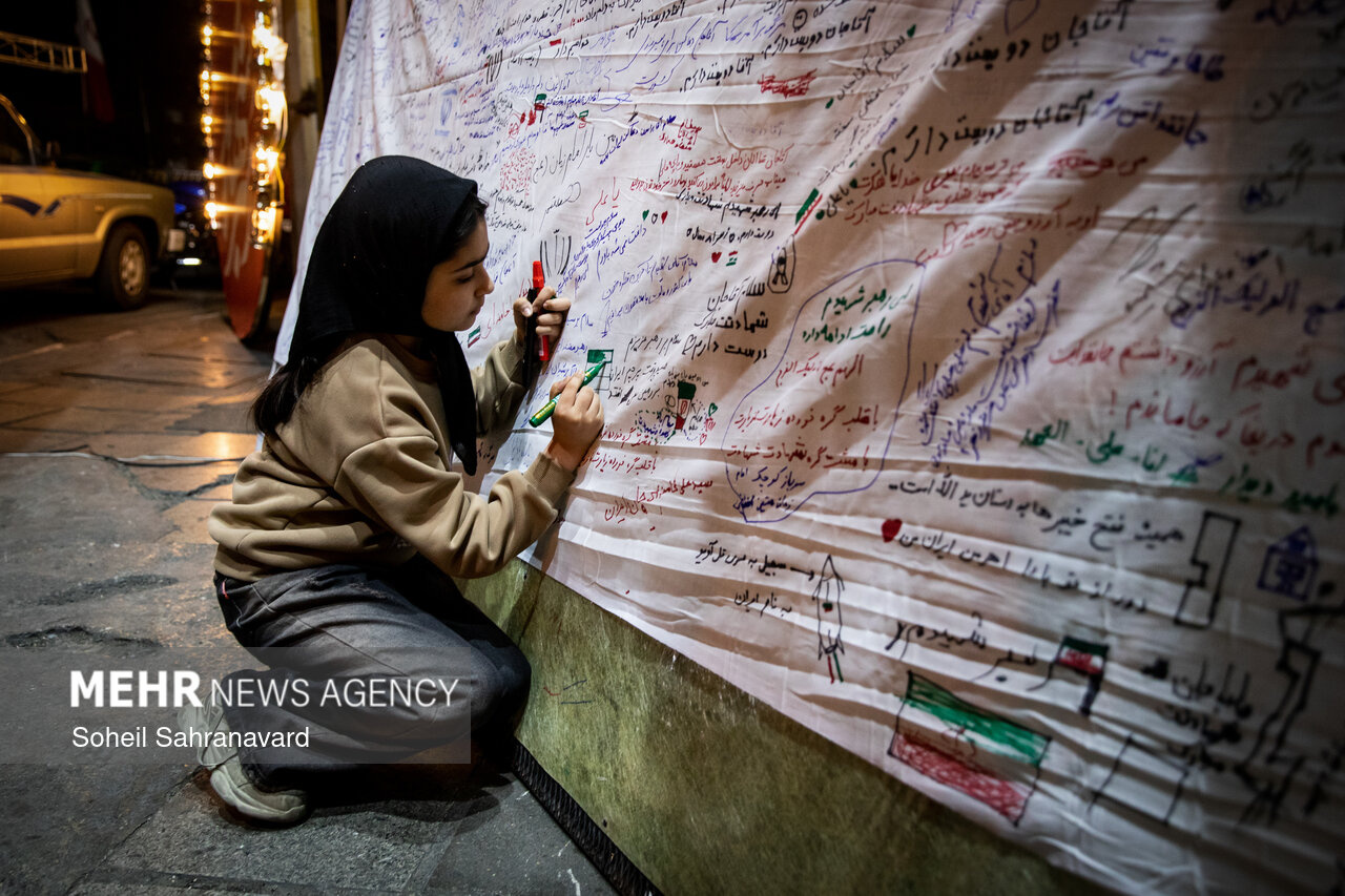 اقشار مختلف مردم در ایام جنگ رمضان و برای خنثی کردن توطئه احتمالی دشمن صهیونی، همدل و همصدا در خیابان کشوردوست روبروی مقتل رهبر شهید امام خامنه ای حاضر شدند.|منبع: مهر