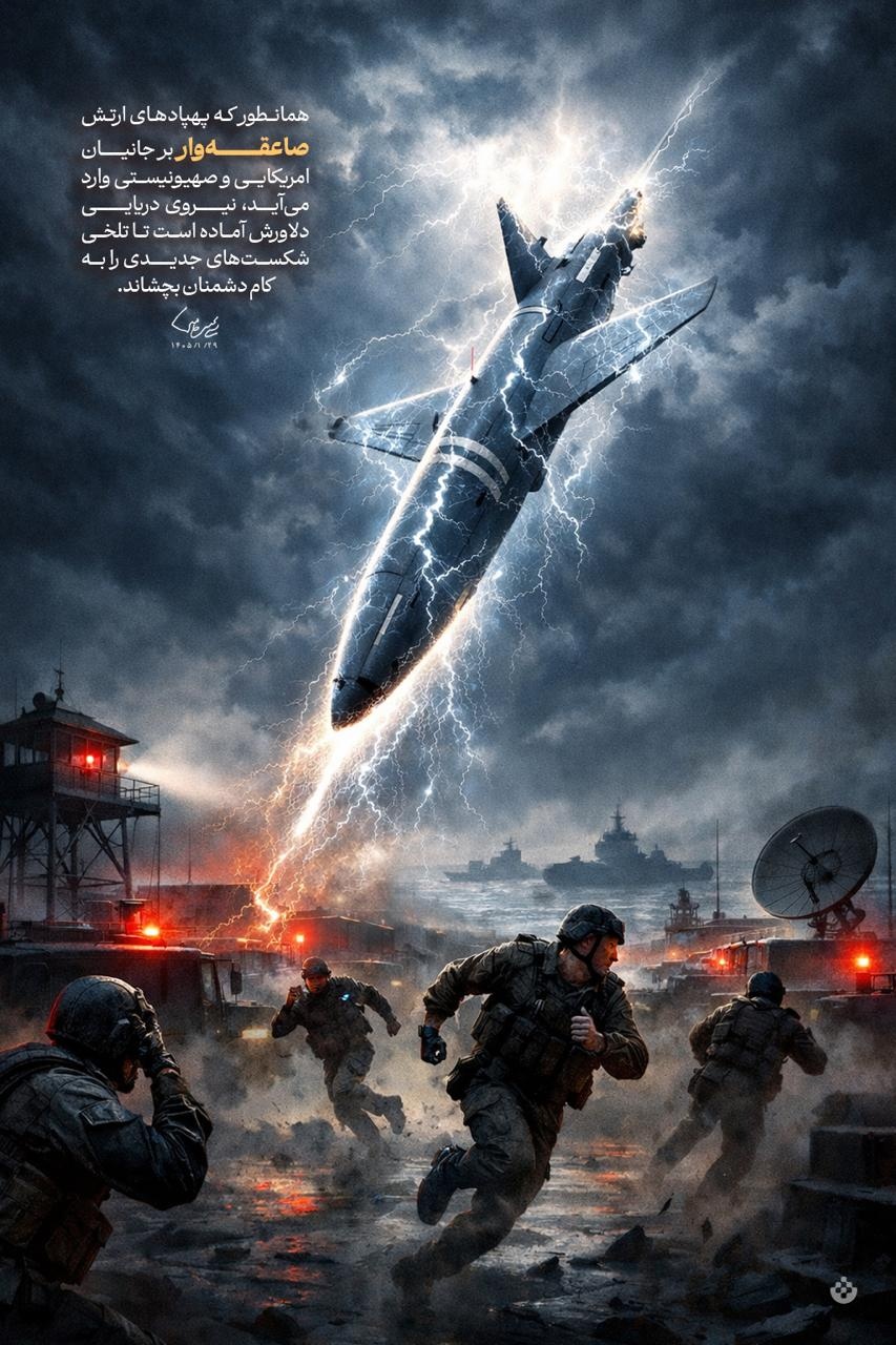 رهبر معظم انقلاب: همانطور که پهپادهای آن صاعقهوار بر جانیان امریکایی و صهیونی وارد میآید، نیروی دریایی دلاورش آماده است تا تلخی شکستهای جدیدی را به کام دشمنان بچشاند.