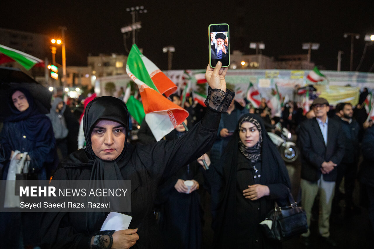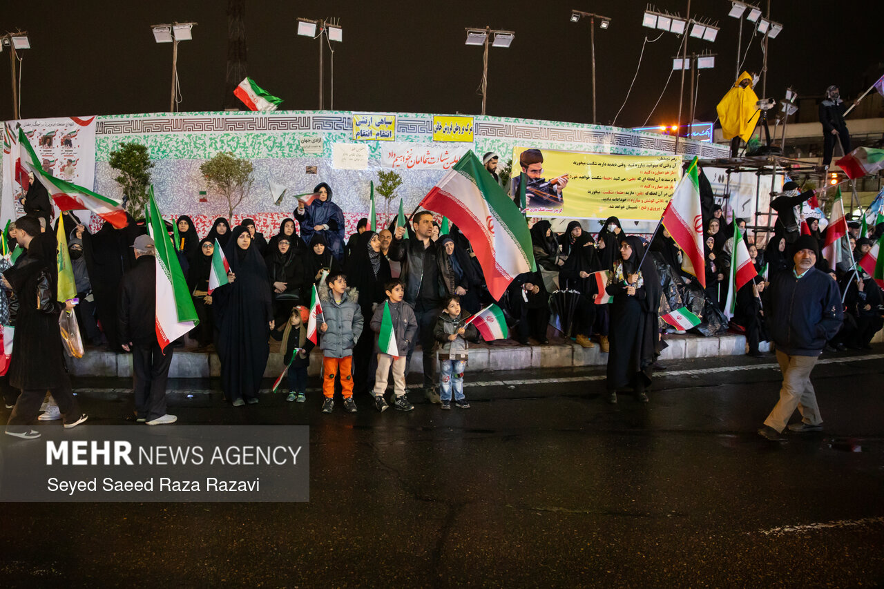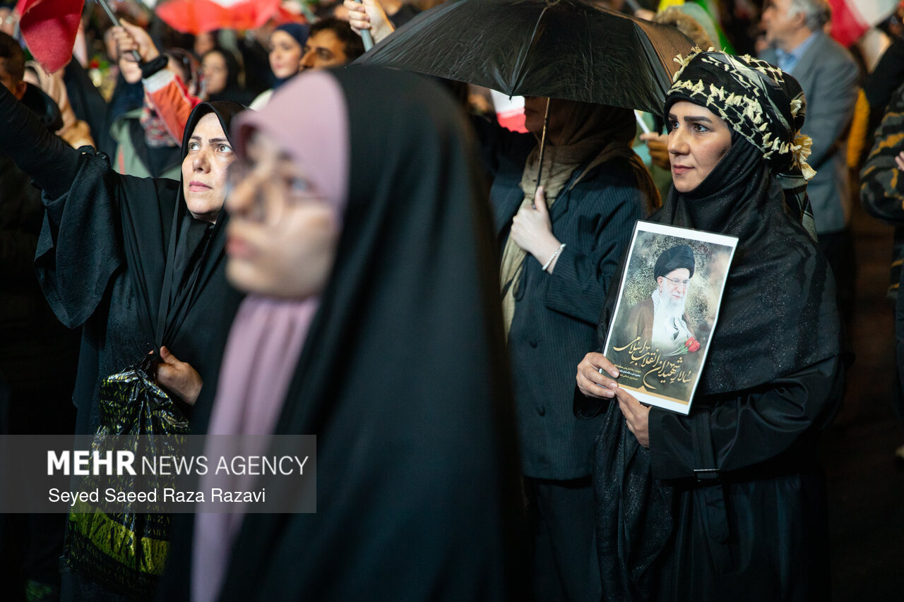شامگاه دوشنبه ۳۱ فروردین ماه ۱۴۰۵ مردم تهران همزمان با دیگر نقاط کشور با حضور در خیابانها و میادین اصلی شهر ضمن گرامیداشت یاد رهبر شهید و بیعت با حضرت آیت الله سید مجتبی خامنهای حمایت خود را از مدافعان وطن اعلام کردند. |منبع: مهر
