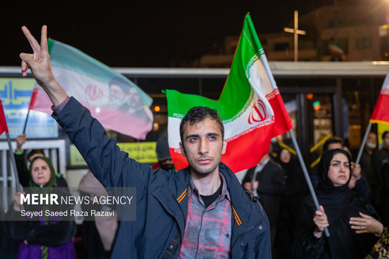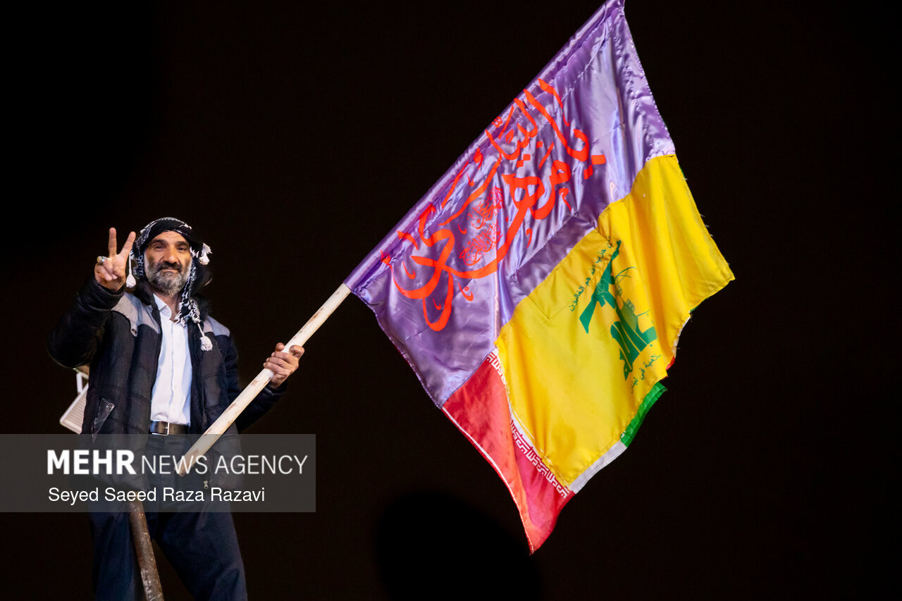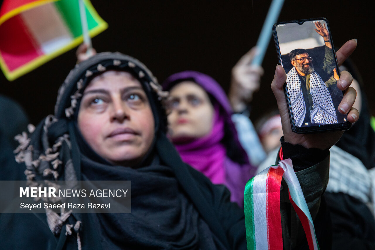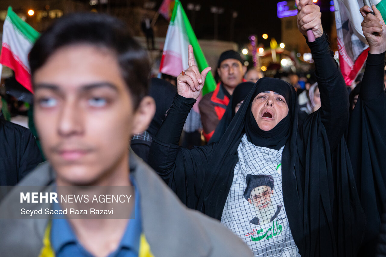 شامگاه دوشنبه ۳۱ فروردین ماه ۱۴۰۵ مردم تهران همزمان با دیگر نقاط کشور با حضور در خیابانها و میادین اصلی شهر ضمن گرامیداشت یاد رهبر شهید و بیعت با حضرت آیت الله سید مجتبی خامنهای حمایت خود را از مدافعان وطن اعلام کردند. |منبع: مهر