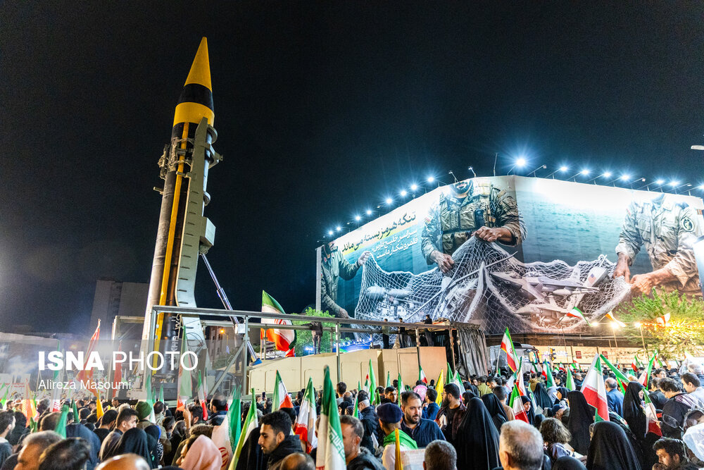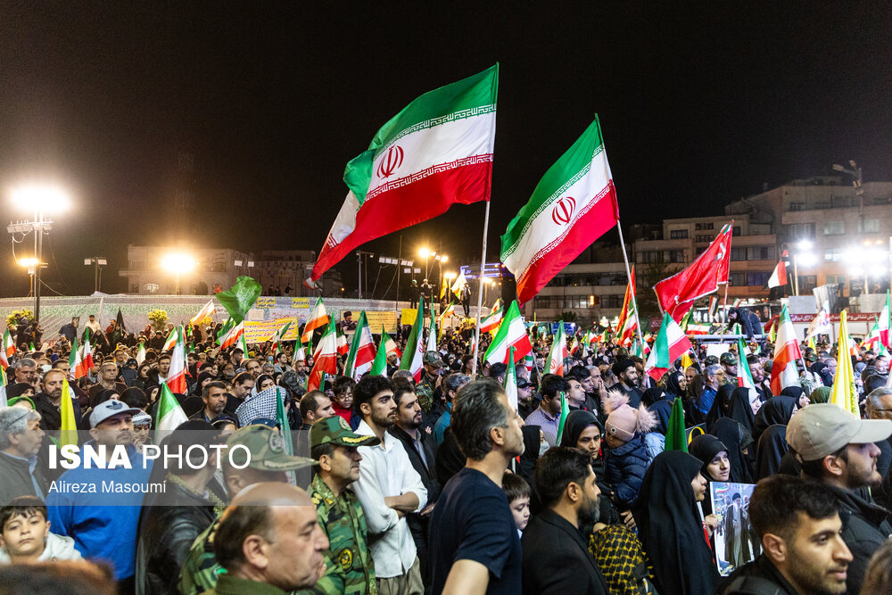 شامگاه سهشنبه ۱ اردیبهشت ۱۴۰۵، مردم تهران همزمان با دیگر نقاط کشور با حضور در خیابانها و میادین اصلی شهر ضمن گرامیداشت یاد رهبر شهید و بیعت با حضرت آیت الله سید مجتبی خامنهای حمایت خود را از مدافعان وطن اعلام کردند. |منبع: ایسنا
