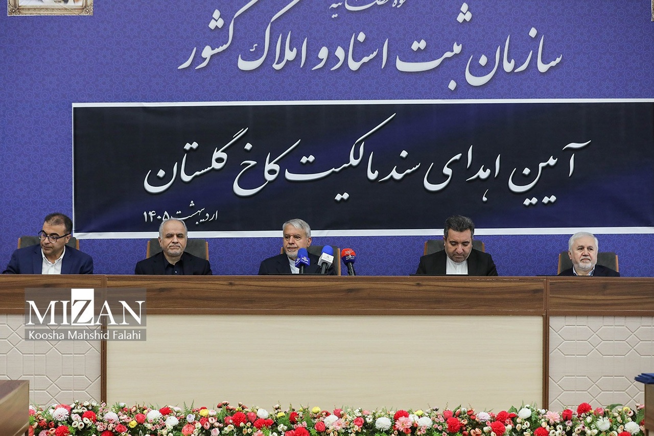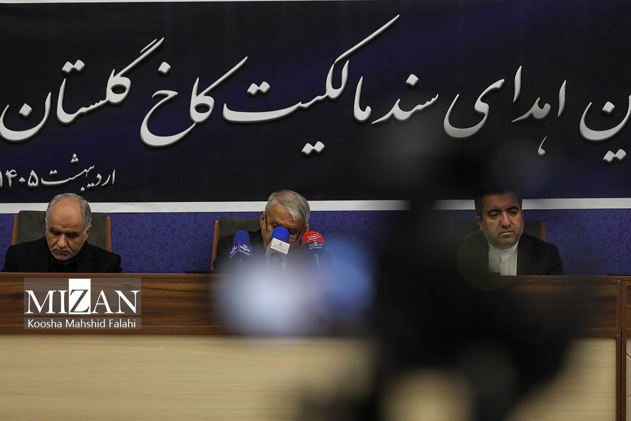 آیین اهدای سند مالکیت کاخ گلستان و اهدای نمادین ۴ فقره سند مالکیت مربوط به تپه هگمتانه، پاسارگاد، تخت جمشید و عمارت چهلستون، امروز چهارشنبه (۲ اردیبهشت ۱۴۰۵) با حضور حسن بابایی رئیس سازمان ثبت اسناد و املاک کشور، امینحسین رحیمی وزیر دادگستری، سیدرضا صالحیامیری وزیر میراث فرهنگی، گردشگری و صنایعدستی و جمعی از مدیران و معاونان این دستگاهها برگزار شد.|منبع: میزان